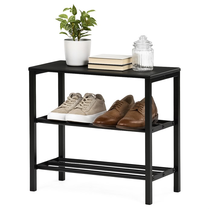 Štýlový a praktický botník značky Autronic je perfektnou voľbou pre každú modernú predsieň. Jeho elegantné čierne prevedenie s kovovou konštrukciou zaisťuje odolnosť a dlhú životnosť. Botník ponúka dve priestranné police, ktoré poskytujú dostatok miesta na uskladnenie obuvi, zatiaľ čo hornú dosku môžete využiť na dekorácie alebo drobnosti. Vďaka minimalistickému dizajnu sa ľahko začlení do akéhokoľvek interiéru. Tento botník kombinuje funkčnosť s jednoduchým a čistým vzhľadom, ktorý vám pomôže udržať predsieň vždy upratanú.