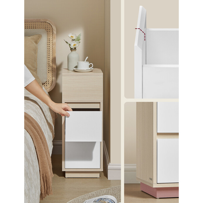 Nočný stolík ANT-E1065 BUK v prírodnej béžovej farbe kombinuje MDF materiál s dekorom buku, ktorý dodáva nábytku jemný a prirodzený vzhľad. Kompaktné rozmery 25 × 30 × 65 cm umožňujú umiestnenie aj do menších priestorov, pričom ponúka praktický úložný priestor vo forme otvorenej priehradky a dvoch zásuviek s bielym čelným panelom. Stolík je stabilný vďaka pevnej základni z MDF a jeho povrchová úprava uľahčuje údržbu. Dizajn s čistými líniami a kontrastom prírodného a bieleho odtieňa podporuje univerzálne využitie v rôznych interiéroch. Tento model je ideálny na uloženie drobných predmetov a zároveň poslúži ako elegantný doplnok spálne či obývačky.