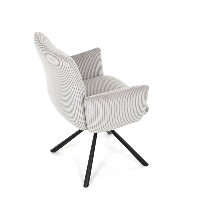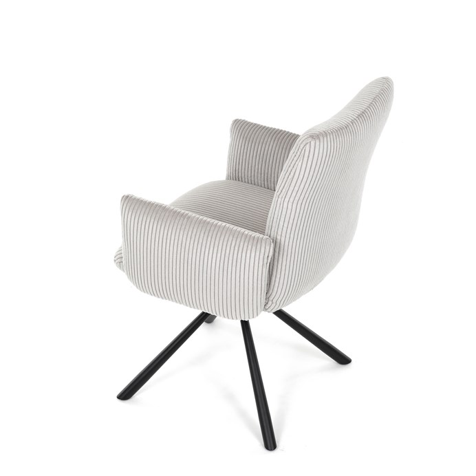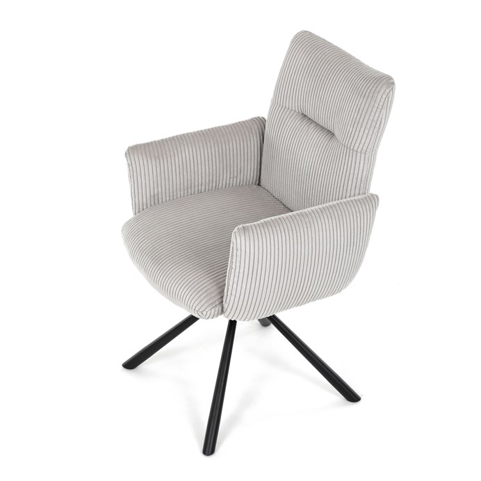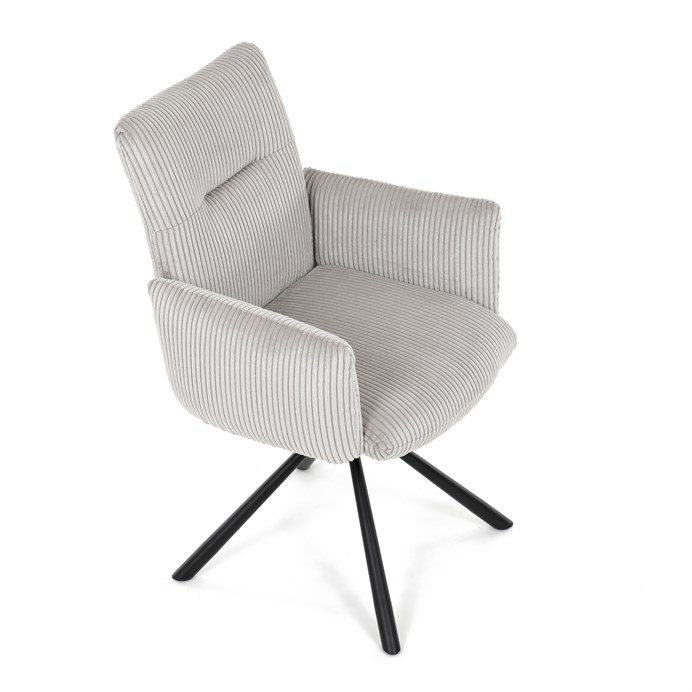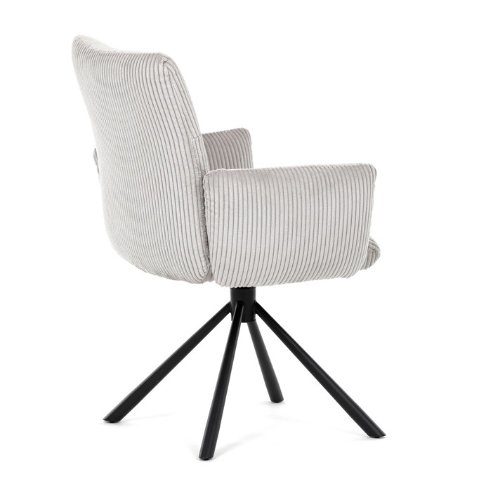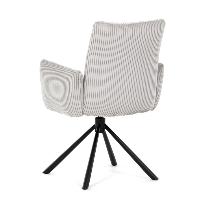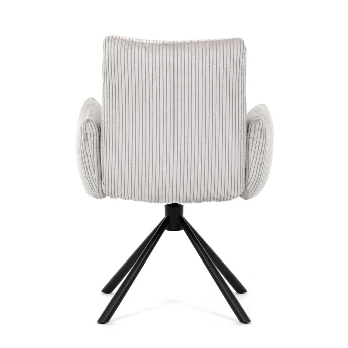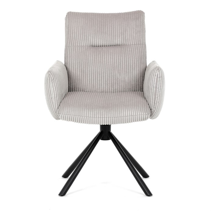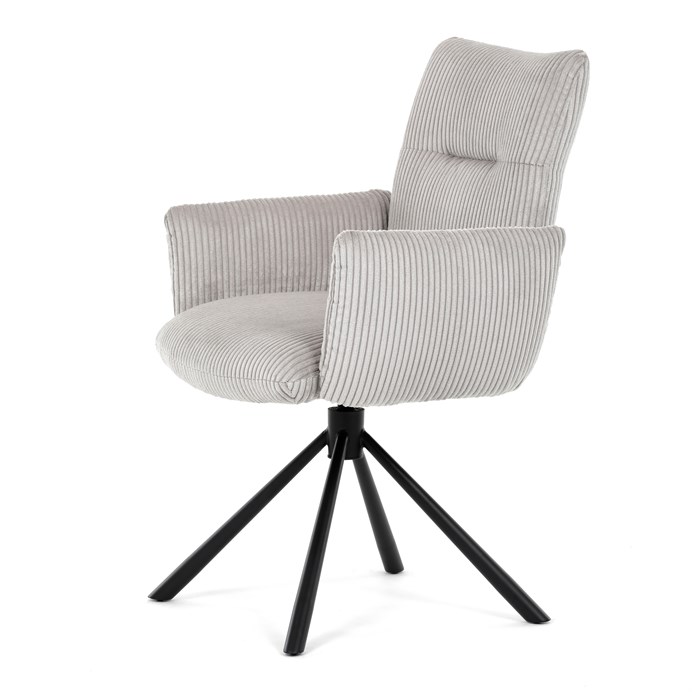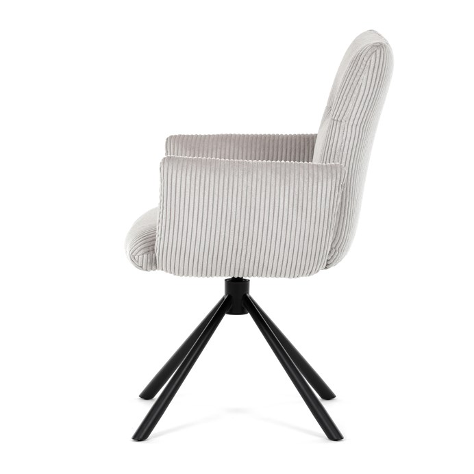 Jedálenská stolička DCH-D1332 CRM2 značky Autronic v krémovej manšestrovej látke spája elegantný dizajn s vysokým komfortom sedenia vďaka výraznému polstrovaniu sedáka, operadla a podrúčok. Poťah z jemnej manšestrovej látky zabezpečuje príjemný dotyk a vizuálne podčiarkuje nadčasový vzhľad stoličky. Konštrukcia nôh je vyrobená z čierne práškovo lakovaného kovu, ktorý poskytuje stabilitu a dlhodobú odolnosť proti opotrebeniu. Otočný 360° vratný mechanizmus umožňuje plynulý a tichý pohyb, čo zvyšuje ergonómiu a uľahčuje manipuláciu so stoličkou v jedálenskom priestore. Vyššie polstrovanie prispieva k pohodlnému sedení aj pri dlhšom používaní, zatiaľ čo pevné podrúčky podporujú správnu polohu paží a prispievajú k celkovej ergonómii. Vďaka kombinácii kvalitných materiálov a funkčných prvkov je stolička vhodná pre moderné jedálne aj reprezentatívne priestory s nosnosťou zodpovedajúcou bežnému domácemu používaniu.