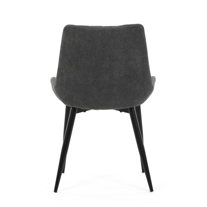Jedálenská stolička s čalúnením v sivej látke ponúka pohodlné sedenie vďaka ergonomicky tvarovanému sedáku a operadlu s dizajnovým prešitím, ktoré zároveň dodáva moderný vzhľad. Pevná kovová podnož v čiernom prevedení zabezpečuje stabilitu a dlhú životnosť. Absencia podrúčok umožňuje jednoduché zasunutie stoličky pod stôl a šetrí miesto v jedálni. Stolička je vhodná na každodenné používanie v domácnostiach aj komerčných priestoroch. Jej jednoduchý, no štýlový dizajn sa ľahko kombinuje s rôznymi interiérovými štýlmi.
