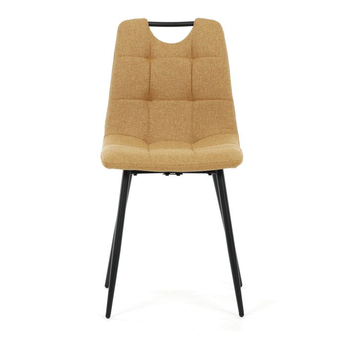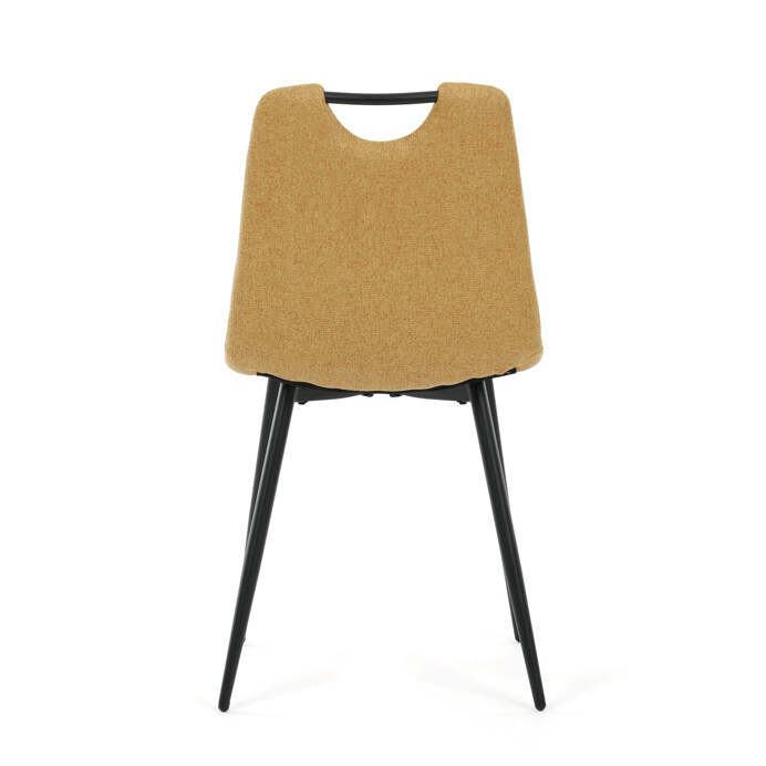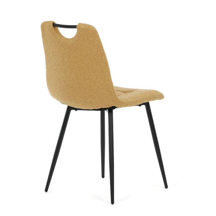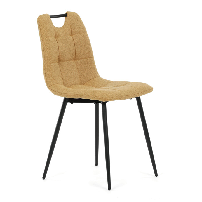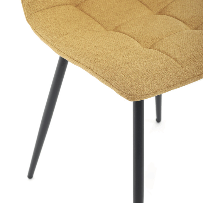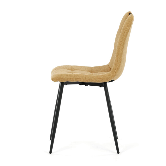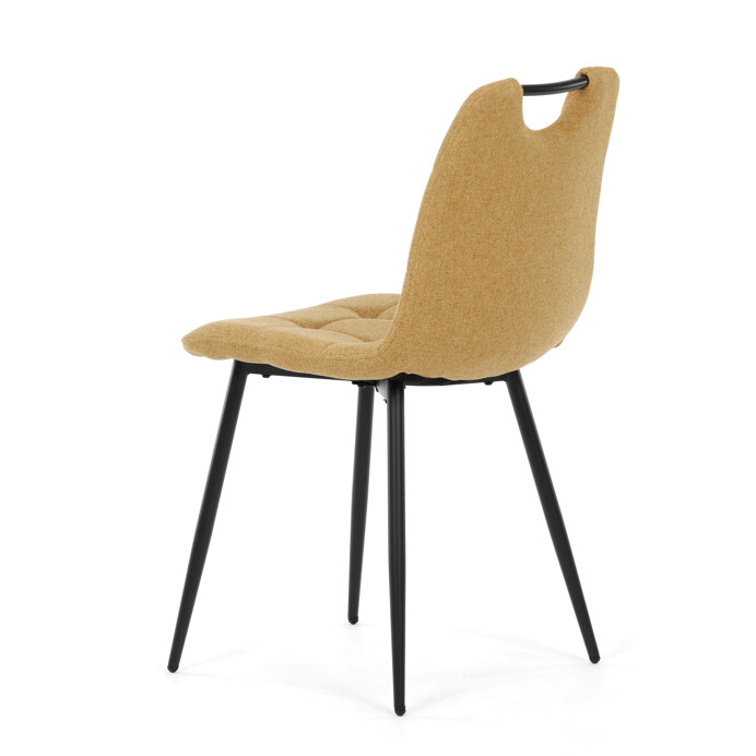 Jedálenská stolička s označením DCL-V2017 YEL2 kombinuje moderný dizajn s praktickými vlastnosťami. Sedák a operadlo sú potiahnuté žltou látkou, ktorá sa ľahko udržiava a je doplnená dizajnovým prešitím pre zvýraznenie estetického dojmu. Čierne matné kovové nohy zabezpečujú stabilitu a pevnosť celej stoličky, zatiaľ čo integrované madlo v hornej časti operadla uľahčuje manipuláciu a prenášanie. Stolička nemá podrúčky ani otočný mechanizmus, čo podporuje jednoduchosť a kompaktnosť. Vďaka kvalitnému spracovaniu a použitým materiálom je vhodná na každodenné použitie v jedálňach aj komerčných priestoroch.