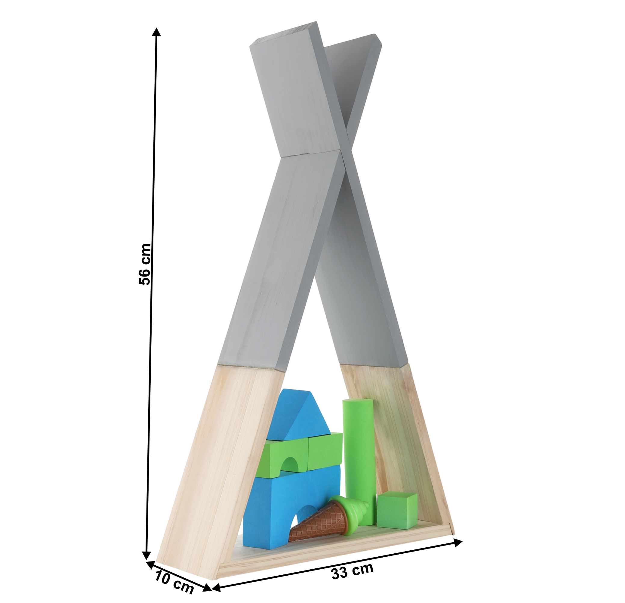 Materiál: masívne drevo Farba: sivá/prírodná Rozmery (ŠxHxV): 33x10x56 cm Nosnosť: 3 kg Detská Vhodná do detských izieb Do škôlok aj klubovní Dodávané v demonte