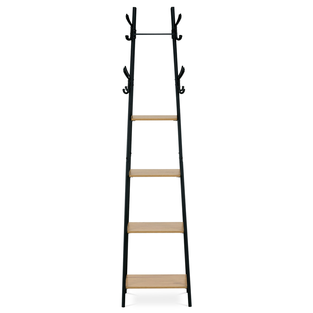 Vešiak značky Autronic s praktickými policami a industriálnym dizajnom je ideálnym riešením pre organizáciu a dekoráciu vašej predsiene alebo spálne. Kombinácia dekoru divokého duba a čierneho kovového rámu dodáva interiéru moderný charakter. Štyri priestranné police ponúkajú dostatok miesta na odkladanie doplnkov, klobúkov alebo topánok, zatiaľ čo háčiky umožňujú zavesenie kabátov a tašiek. Tento multifunkčný kúsok spája štýl a praktickosť, čo ocení každý, kto hľadá designový a účelný doplnok pre svoj domov.