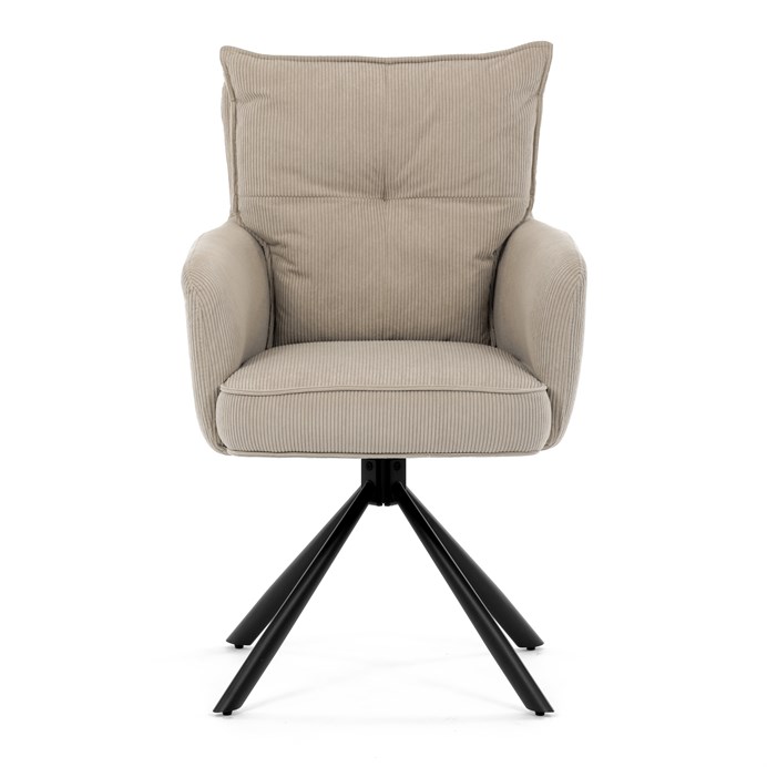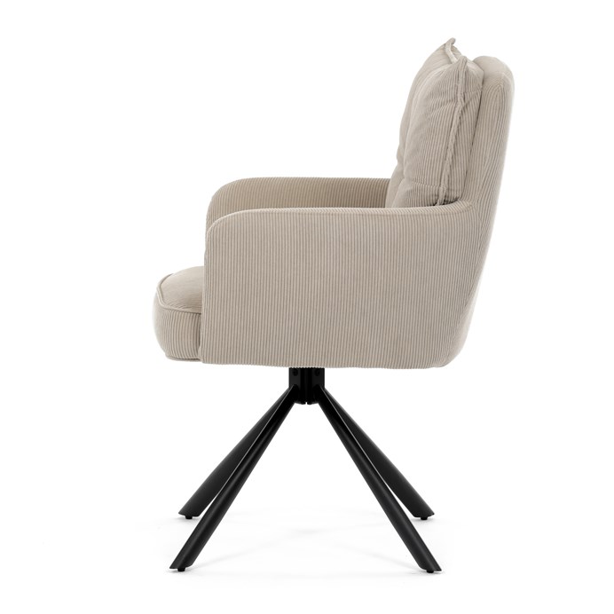 Jedálenská stolička HC-X1128 LAN2 od značky Autronic ponúka komfortné sedenie vďaka vysokému polstrovaniu sedáka a operadla potiahnutému lanýžovou látkou manšestr v béžovom odtieni. Sedák je vybavený taštičkovými pružinami, ktoré zvyšujú pohodlie a prispôsobivosť pri sedení. Stolička disponuje otočnou funkciou s vratným mechanizmom umožňujúcim otáčanie o 180°, čo uľahčuje pohyb a prístup k jedálenskému stolu. Podrúčky sú súčasťou čalúnenej časti pevne spojenej s kovovou podnožou v čiernom matnom prevedení, ktorá zabezpečuje stabilitu a dlhú životnosť. Vďaka kombinácii kvalitných materiálov a funkčných prvkov je stolička vhodná do moderných jedálenských priestorov s dôrazom na pohodlie aj dizajn.