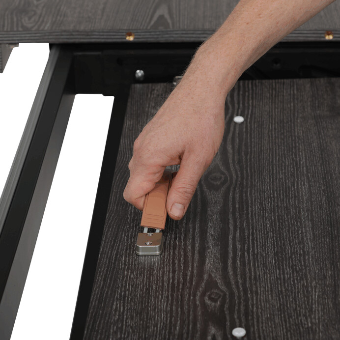 Jedálenský stôl HT-R5624 GREY ponúka praktické rozkladanie s celkovými rozmermi 160+80x90x75 cm, čo umožňuje flexibilné využitie priestoru. Doska je vyrobená z lamina s dekorom sivého dubu a je opatrená ABS hranou, ktorá zvyšuje odolnosť proti poškodeniu a uľahčuje údržbu. Matný povrch dodáva stolovej doske moderný vzhľad a zároveň minimalizuje viditeľnosť odtlačkov prstov. Stabilná kovová podnož v čiernej farbe zabezpečuje pevnú oporu a dlhú životnosť stola. Vďaka rozkladaciemu mechanizmu je stôl vhodný na každodenné použitie aj pre väčšie spoločenské udalosti.