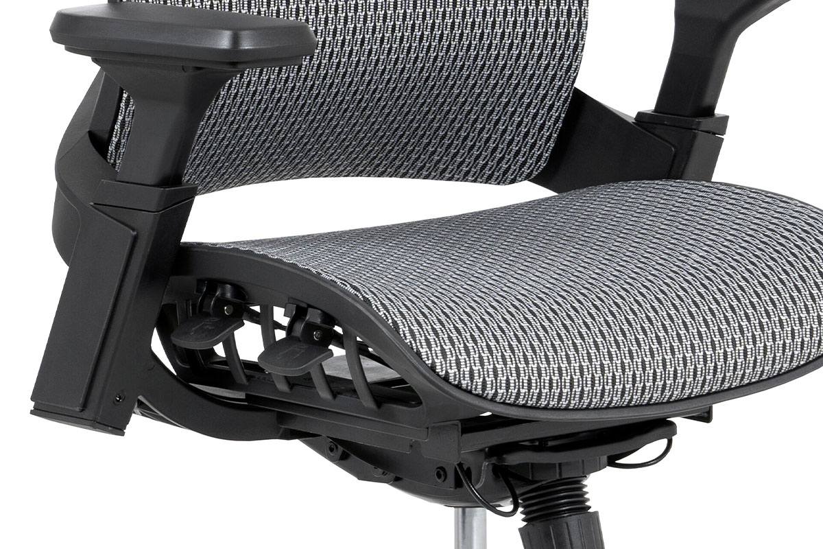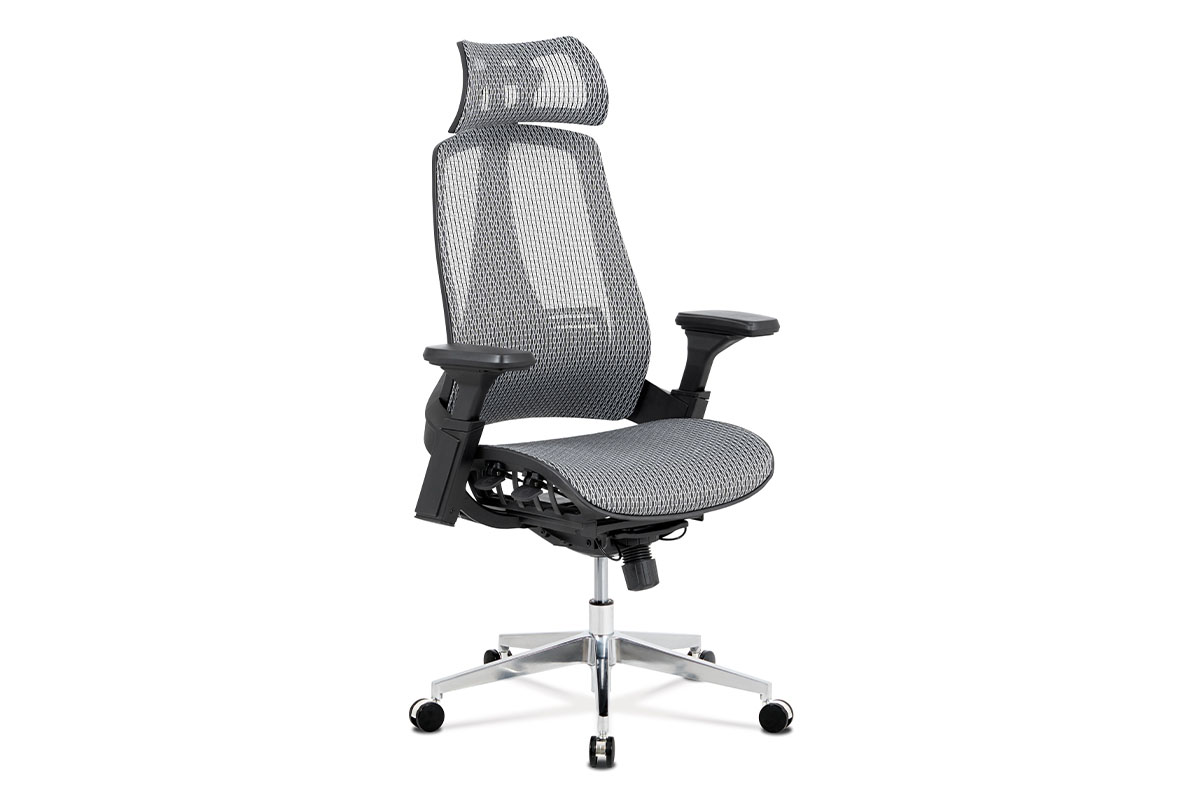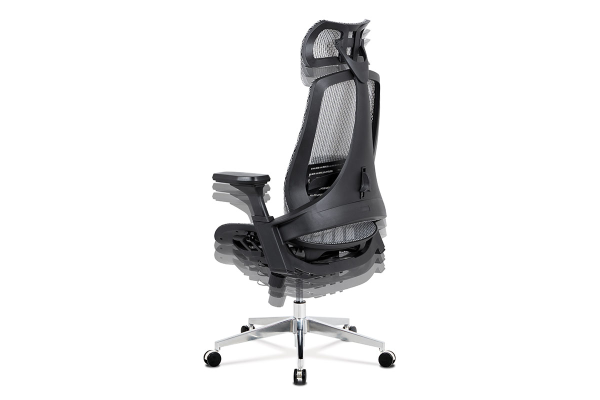 Kancelárska stolička očalúnenie sieťovinou MESH v šedej farbe. Táto stolička je jedinečná svojím lankovým mechanizmom, ktorý zaisťuje vysoký komfort pri užívaní, a to vďaka možnosti nastavenia sedadla (dopredu - dozadu), možnosti aretácie operadla v akejkoľvek polohe a nastavenie výšky. Nastaviteľné podrúčky, bedrová opierka s možnosťou nastavenia podľa užívateľa a opierka hlavy sú tiež veľkou výhodou.