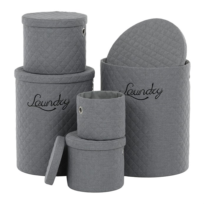 Kôš bielizeň - látka, okrúhly, sivý, ...