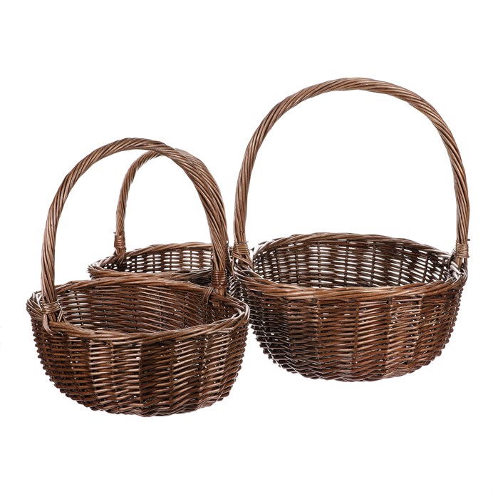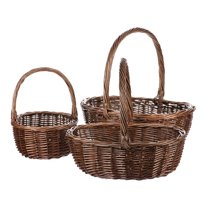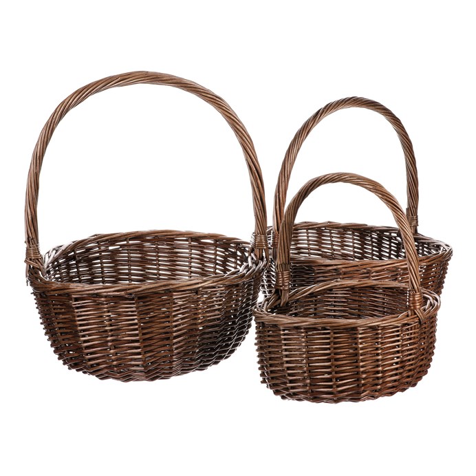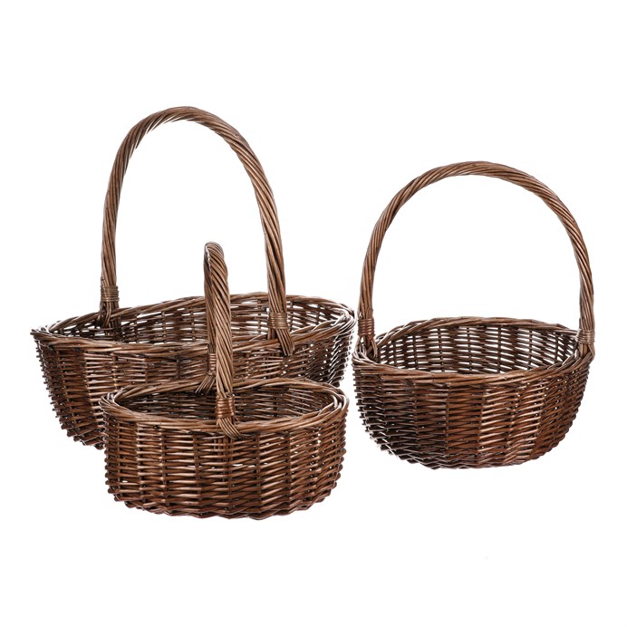PRN2000 Kôš prútený - s uchom, hnedý, cena za sadu 3 ks