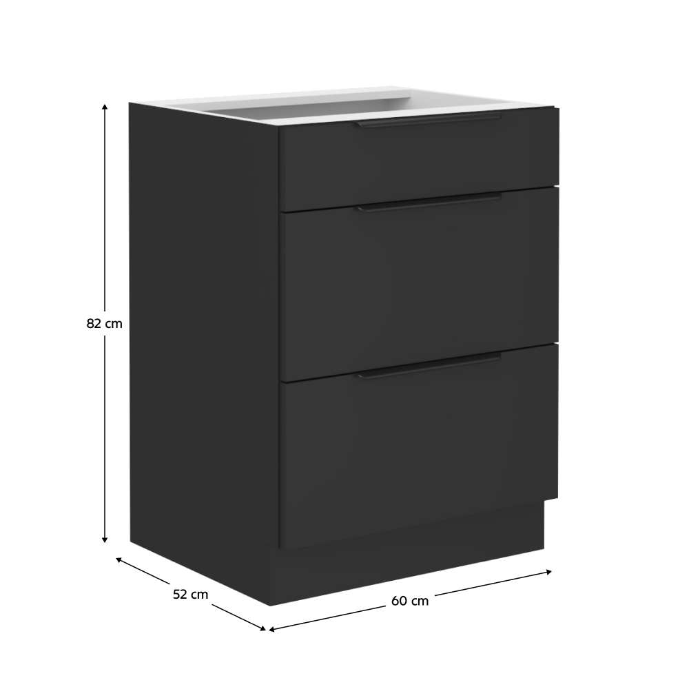 Spodné sektorové skrinky sú dodávané vrátane dolnej lišty (sokla), bez pracovnej dosky. Pracovnú dosku s hrúbkou 3,8 cm si môžete doobjednať v prevedení Dub artisan za cenu 69 EUR/bm.