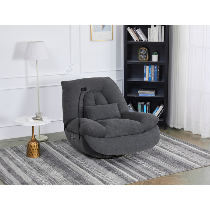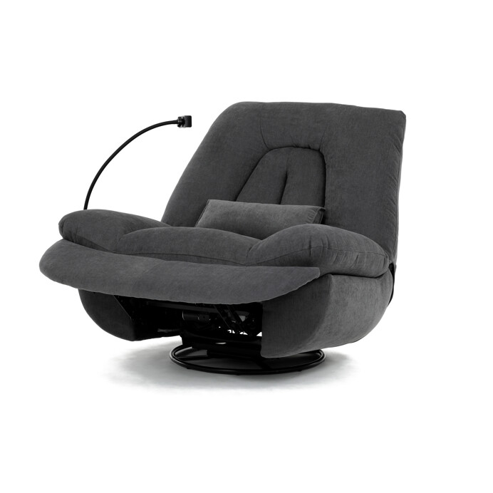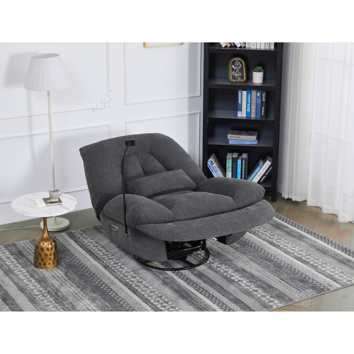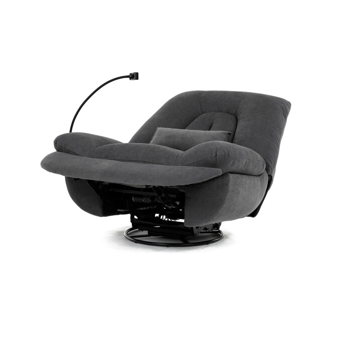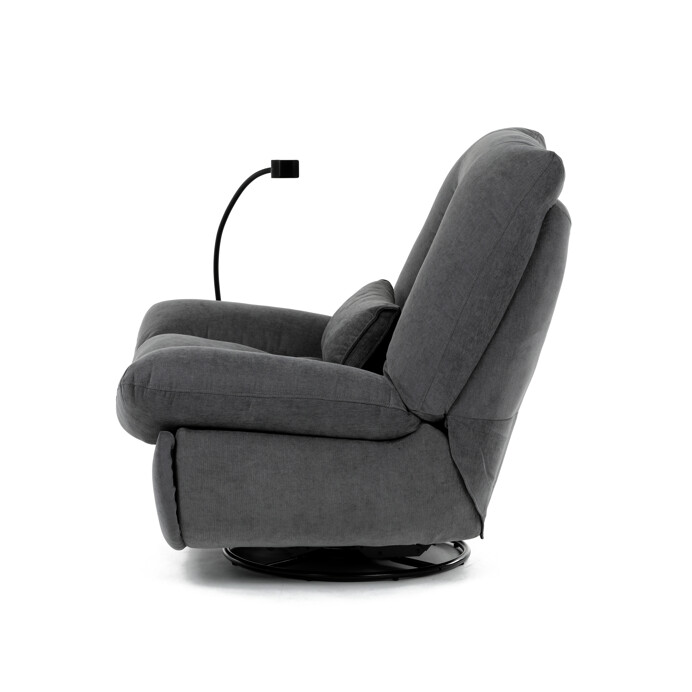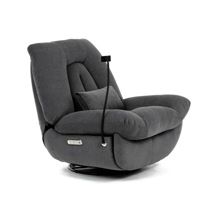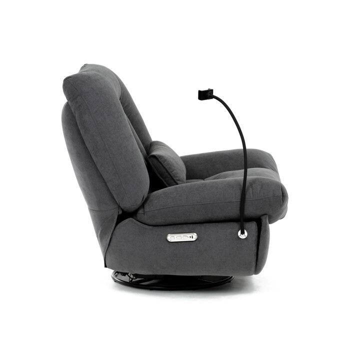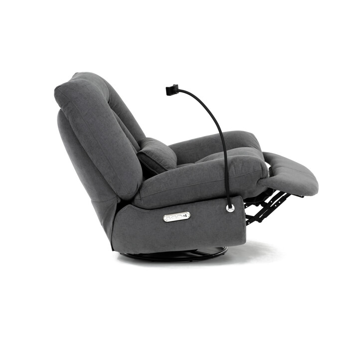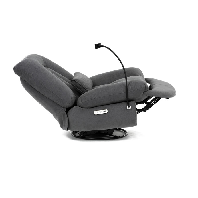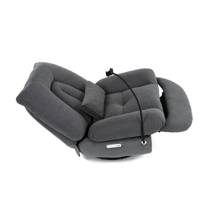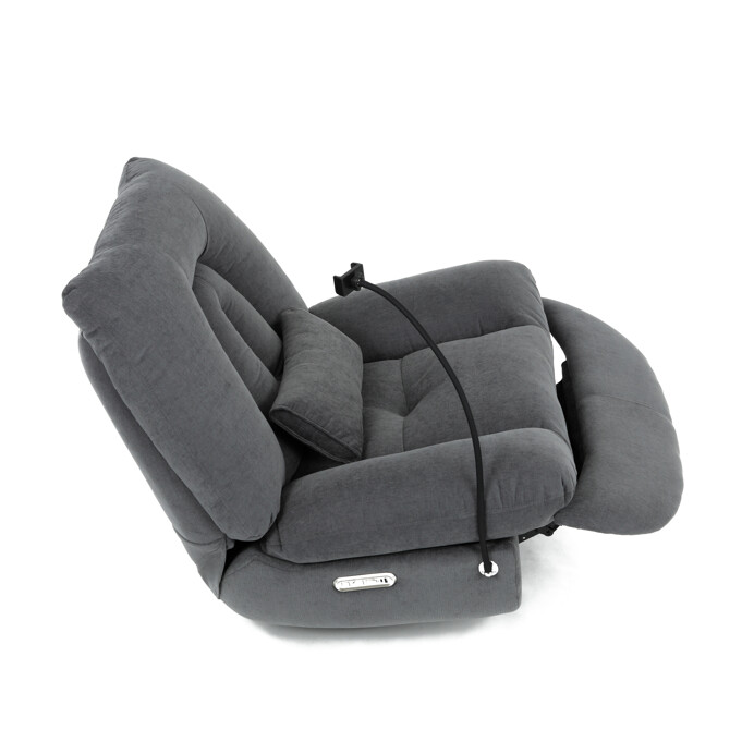 TV kreslo s elektrickým polohovaním v šedej látke ponúka komfortné sedenie s možnosťou nastavenia polohy vďaka dvom motorom. Pevná kovová podnož umožňuje rotáciu až do 240° a hojdačný pohyb s uhlom 30°, čo zvyšuje relaxačný zážitok. Súčasťou je zabudované ovládanie, držiak na telefón a praktický úložný box, ktorý pomáha udržať poriadok v blízkosti sedacieho miesta. Kreslo je navrhnuté s ohľadom na nosnosť až 160 kg a rozkladacou funkciou pre zvýšenie pohodlia počas oddychu. Látkový poťah je príjemný na dotyk a ľahko sa udržiava, čo dopĺňa celkovú praktickosť tohto multifunkčného kresla.