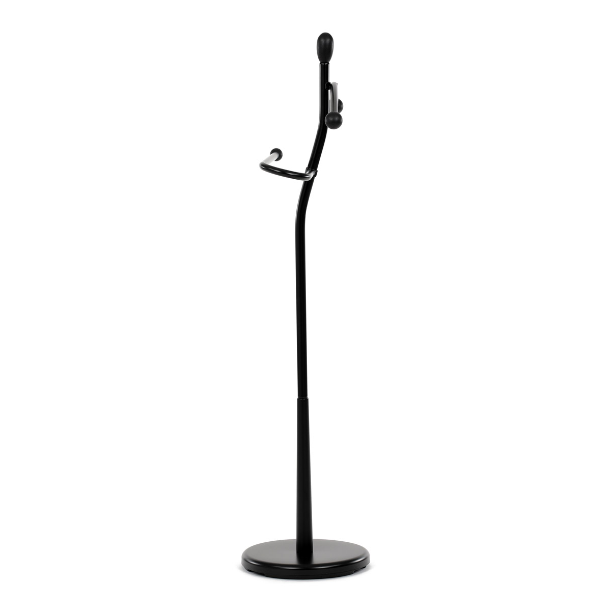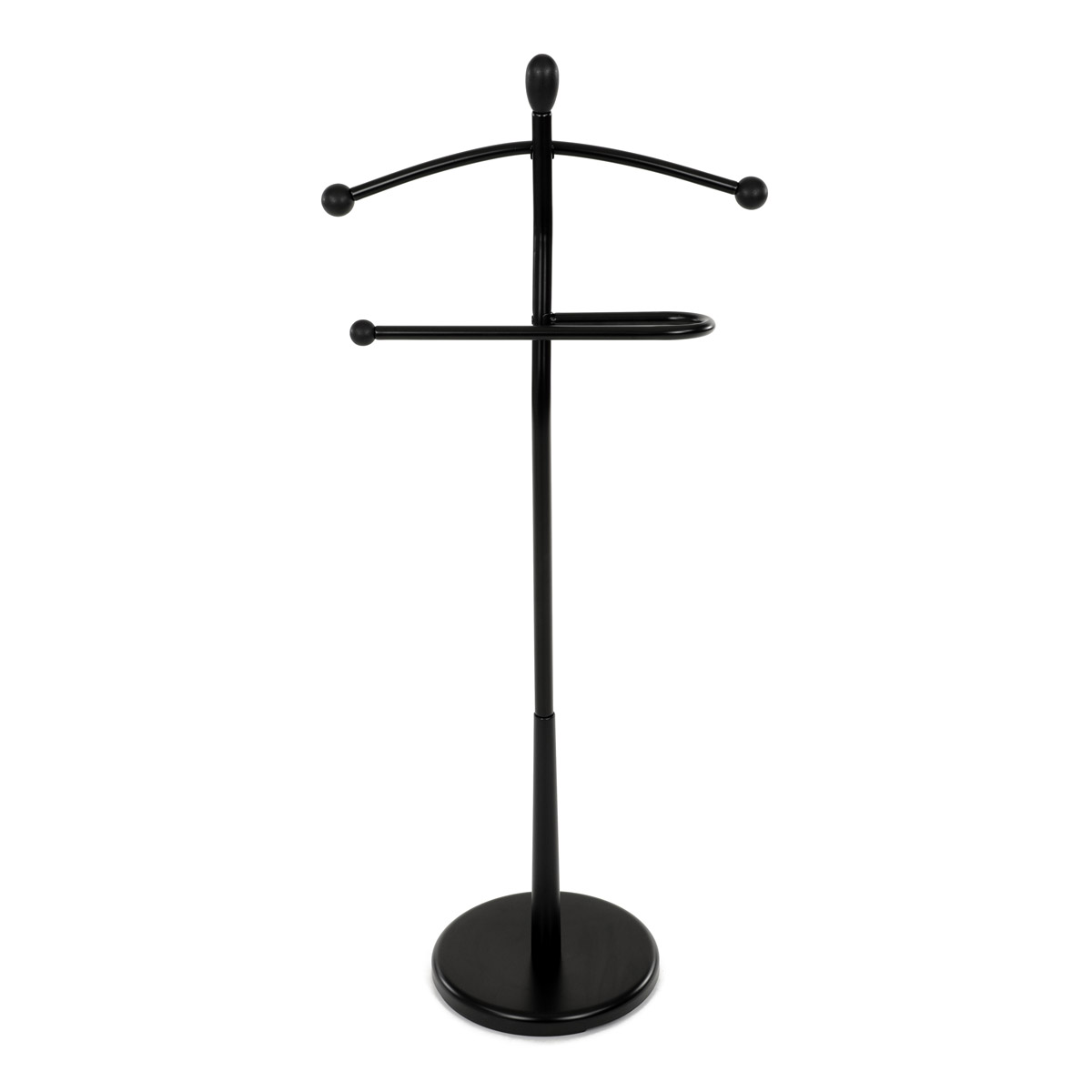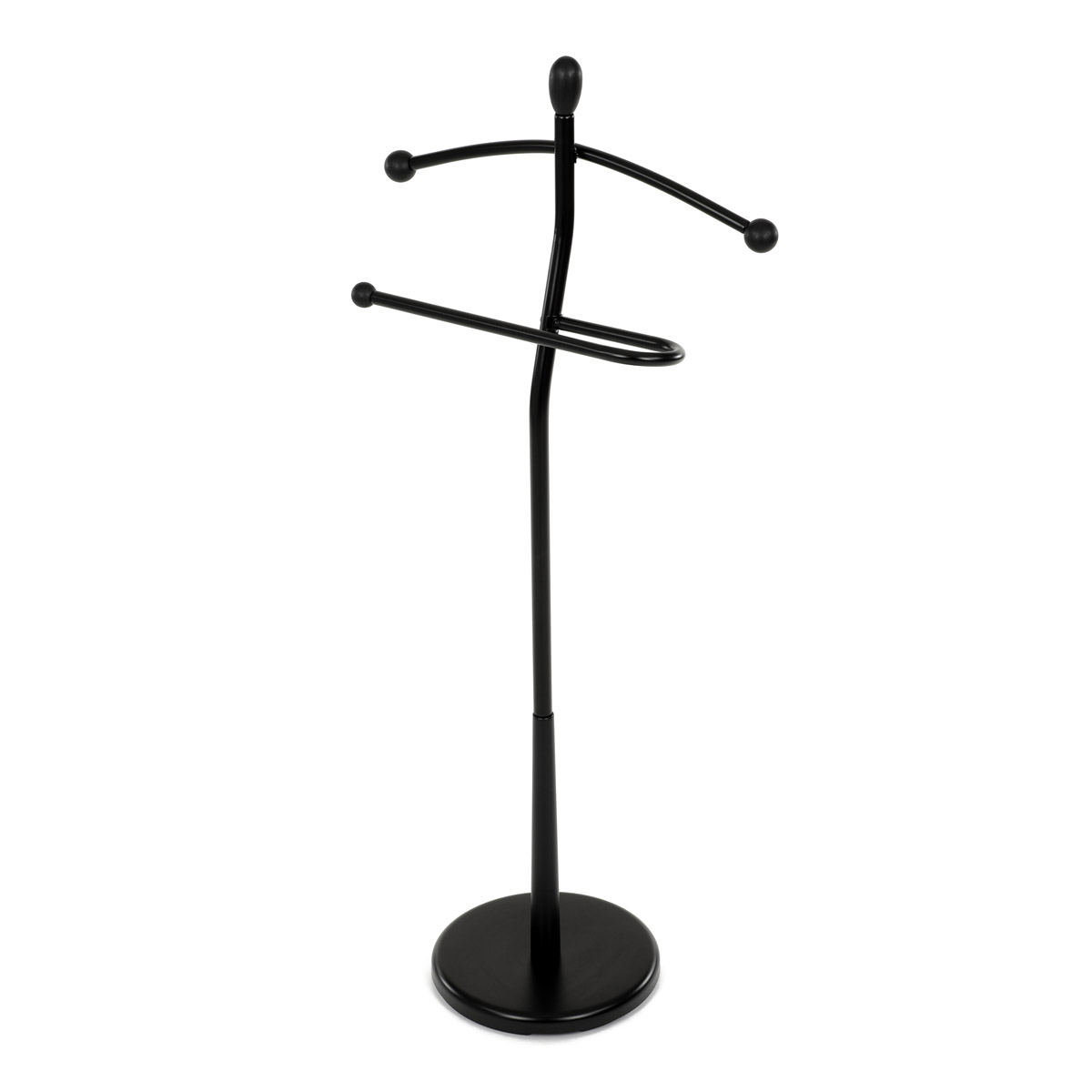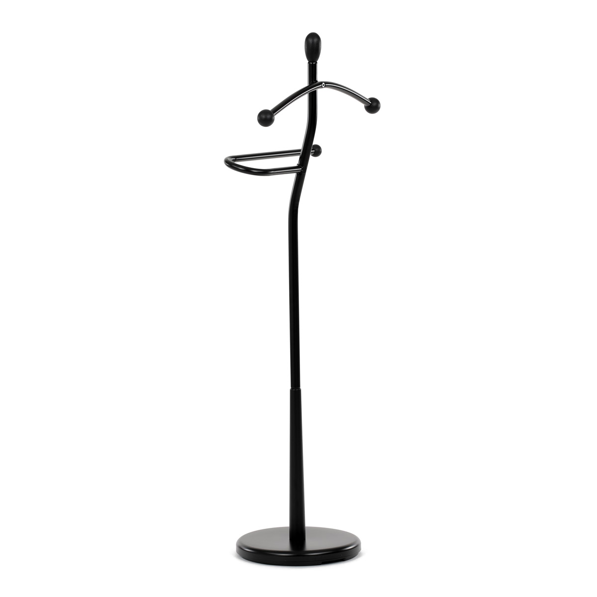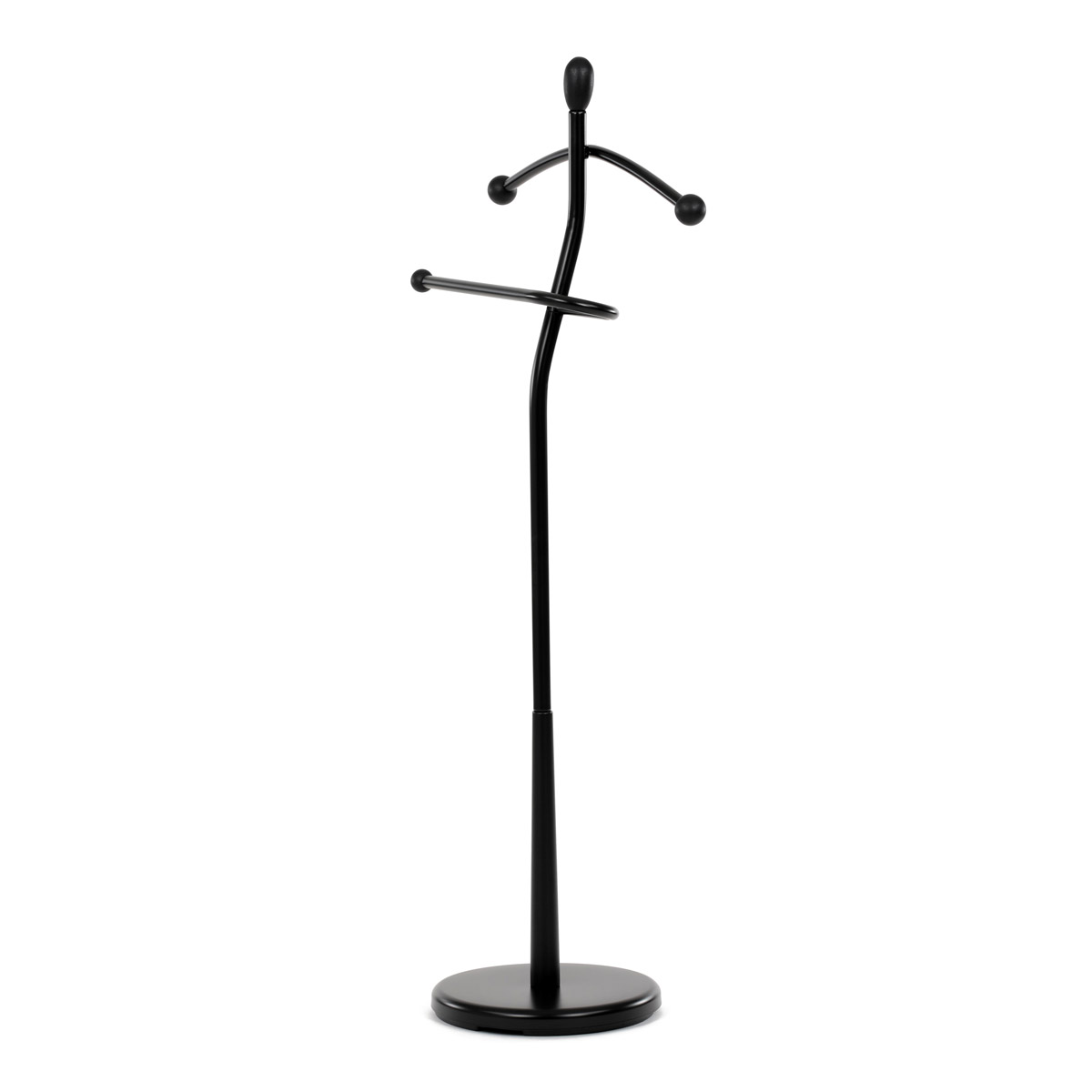 Praktický minimalistický nemý sluha v sebe kombinuje prvky z masívneho kaučukovníkového dreva s kovovými nosnými dielmi v čiernej povrchovej úprave. Tento model je v celočiernom prevedení. Výška 120 cm Vám umožní zavesenie oblečenia aj doplnkov úplne bez pokrčenia. Nosnosť stojana je až 5 kg rovnomerne rozprestretej záťaže, hmotnosť 5 kg. Konštrukcia je zakončená kovovou chrómovanou podestou so záťažou v čiernom plastovom puzdre. Stojan je jednoducho prenositeľný a je možné ho umiestniť podľa momentálnej potreby aj nálady. Štýlom a jednoduchosťou sa hodí do akéhokoľvek interiéru. Využitie je nepreberné, záleží len na Vás.
