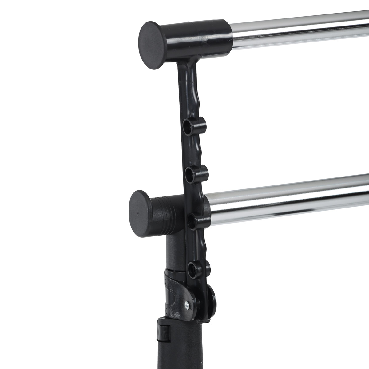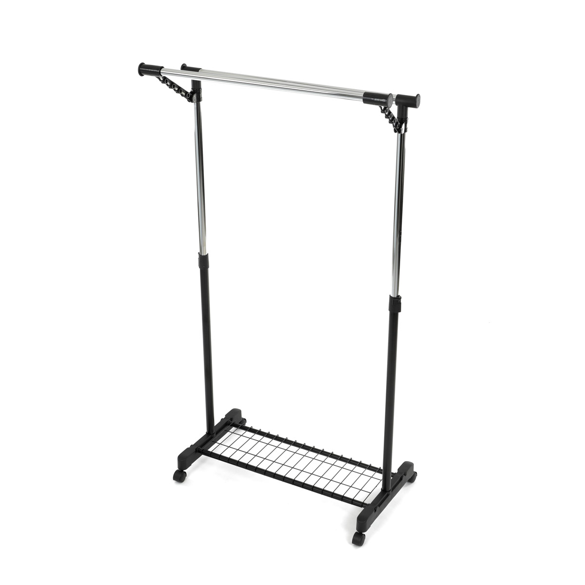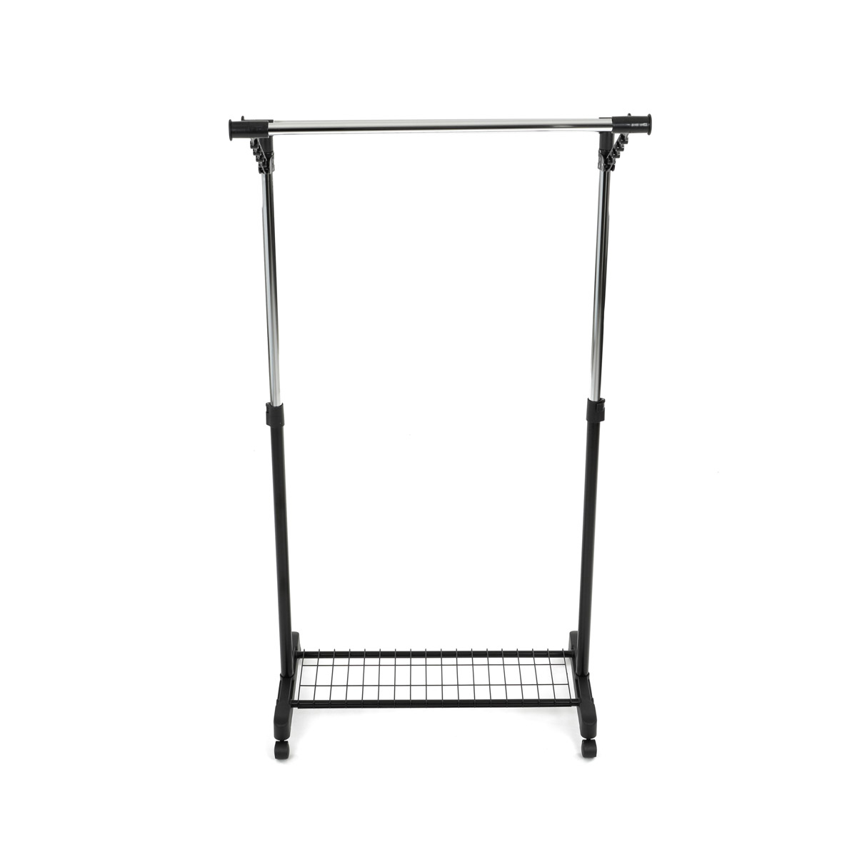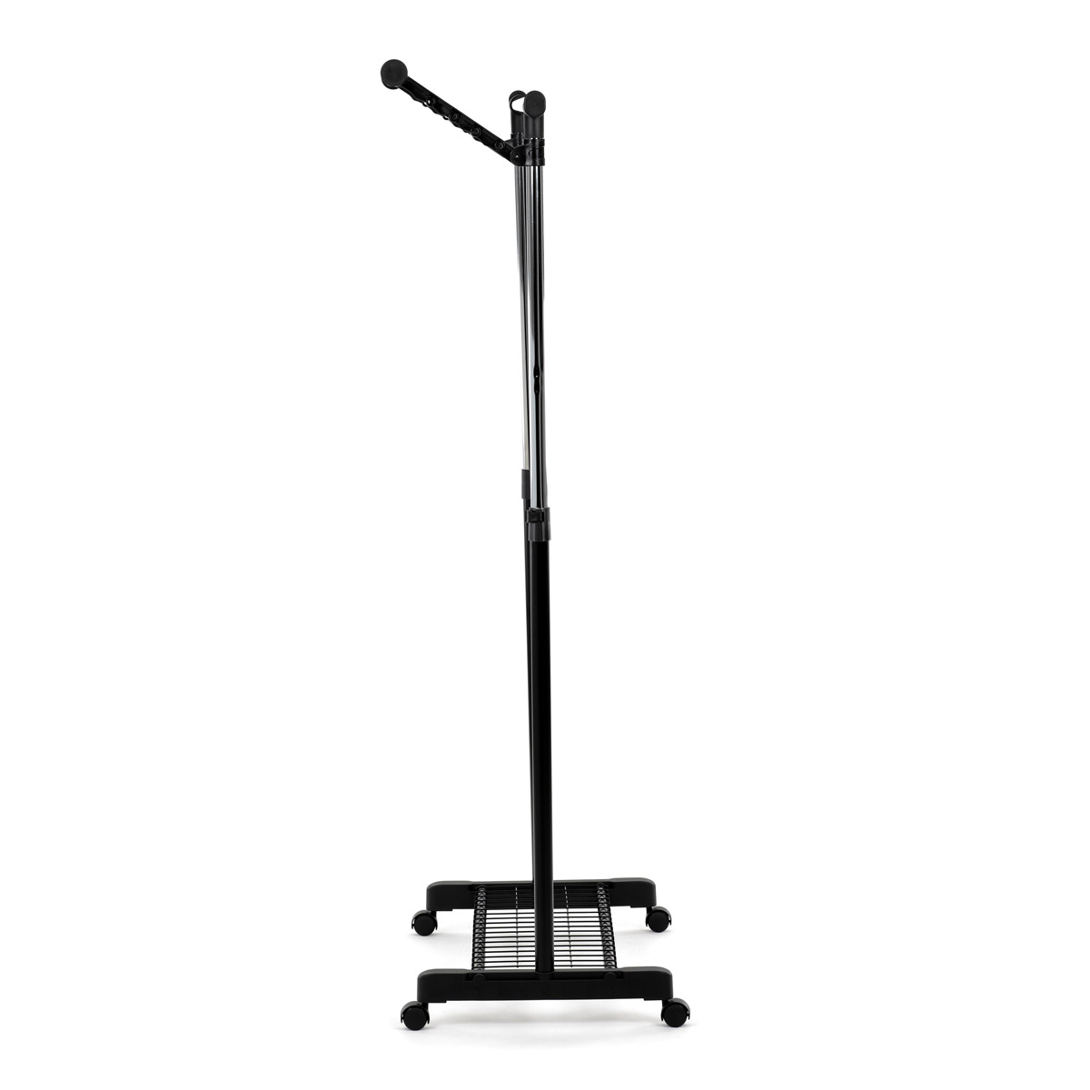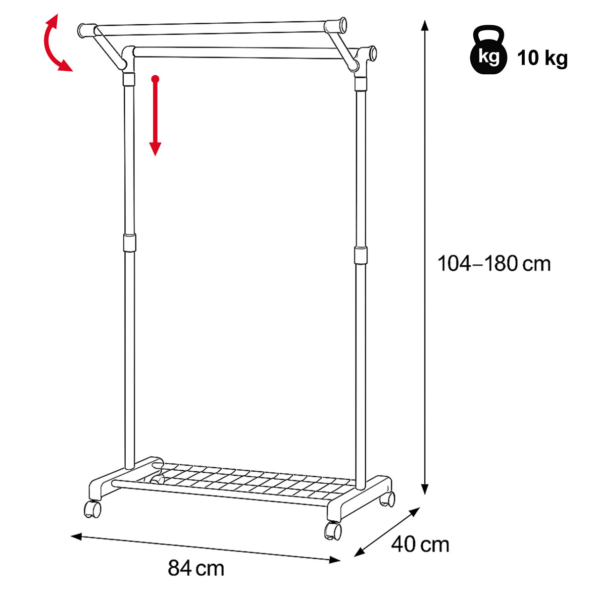 Mobilný stojan na šaty značky Autronic je praktickým riešením na uloženie oblečenia v spálni, šatni alebo predsieni. Čierna kovová konštrukcia doplnená chrómovými detailmi zaisťuje moderný vzhľad a vysokú stabilitu. Vďaka nastaviteľnej výške sa ľahko prispôsobí vašim potrebám. Dolná mriežkovaná polica poskytuje ďalší úložný priestor, napríklad na topánky či tašky. Stojan je vybavený kolieskami, čo umožňuje jednoduchú manipuláciu. Je ideálnym doplnkom pre tých, ktorí hľadajú flexibilitu a funkčnosť spojenú s elegantným designom.