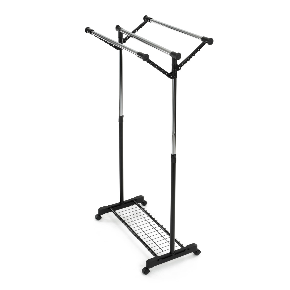 Praktický stojan na šaty značky Autronic prináša funkčnosť aj moderný dizajn. Čierna kovová konštrukcia s chrómovými prvkami ponúka vysokú stabilitu a nastaviteľnosť, čo umožňuje prispôsobiť výšku podľa potreby. Dvojitá tyč poskytuje dostatok priestoru na zavesenie oblečenia, zatiaľ čo kolieska zaisťujú ľahkú manipuláciu. Robustná konštrukcia zvládne aj vyššie zaťaženie, takže je ideálna do spální, šatní alebo predsiení. Vďaka čistému a jednoduchému vzhľadu sa tento stojan ľahko začlení do akéhokoľvek interiéru a uľahčí organizáciu vášho priestoru.