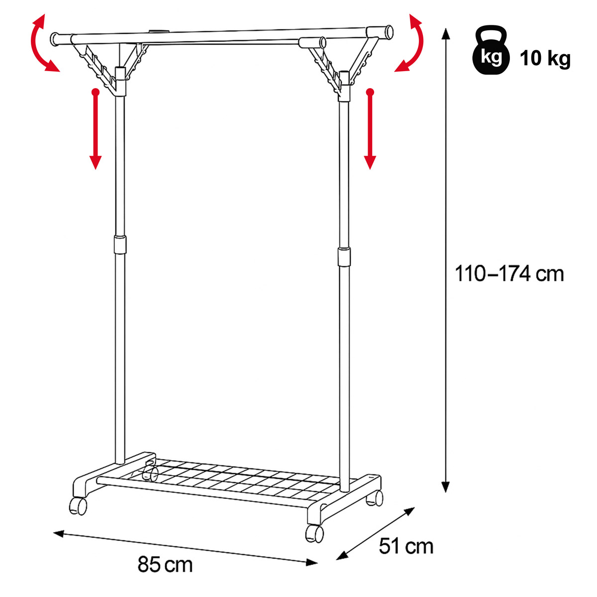 85 x 51 x 110-174 cm