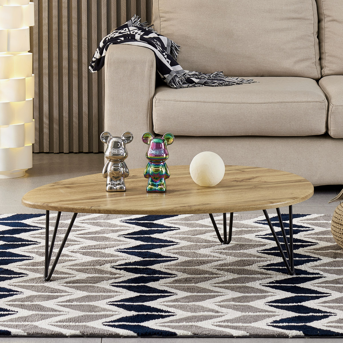 S konferenčným stolom Autronic si užijete esenciu sofistikovanosti a funkčnosti ako na pracovisku, tak aj v domácnosti. Tento progresívny kúsok s robustnou industriálnou estetikou zjednocuje avantgardný design s hrejivosťou motívu divokého duba. Atypický tvar hornej dosky, odborne vyrobený z vysoko kvalitnej MDF, vyžaruje moderný šarm. Vychutnajte si dynamickú súhru medzi tmavou kovovou trojnohou podnožou stola a jeho hnedou doskou. Tento elegantný kontrast umocňuje výraznú osobnosť stola a hladko spája odolnosť s luxusným vzhľadom. Čierna farba nôh zaisťuje veliteľskú prítomnosť, ktorá posilňuje pôvab stola a zároveň slúži ako stabilný základ. Konferenčný stôl Autronic v dekore "divoký dub" dodá vášmu pracovnému priestoru prvok naturalistického pokoja, zatiaľ čo robustná konštrukcia sľubuje trvalú kvalitu. Vdýchnite svojej domácnosti alebo kancelárii inováciu a štýl a využite plný potenciál svojho prostredia s naším starostlivo navrhnutým konferenčným stolom.
