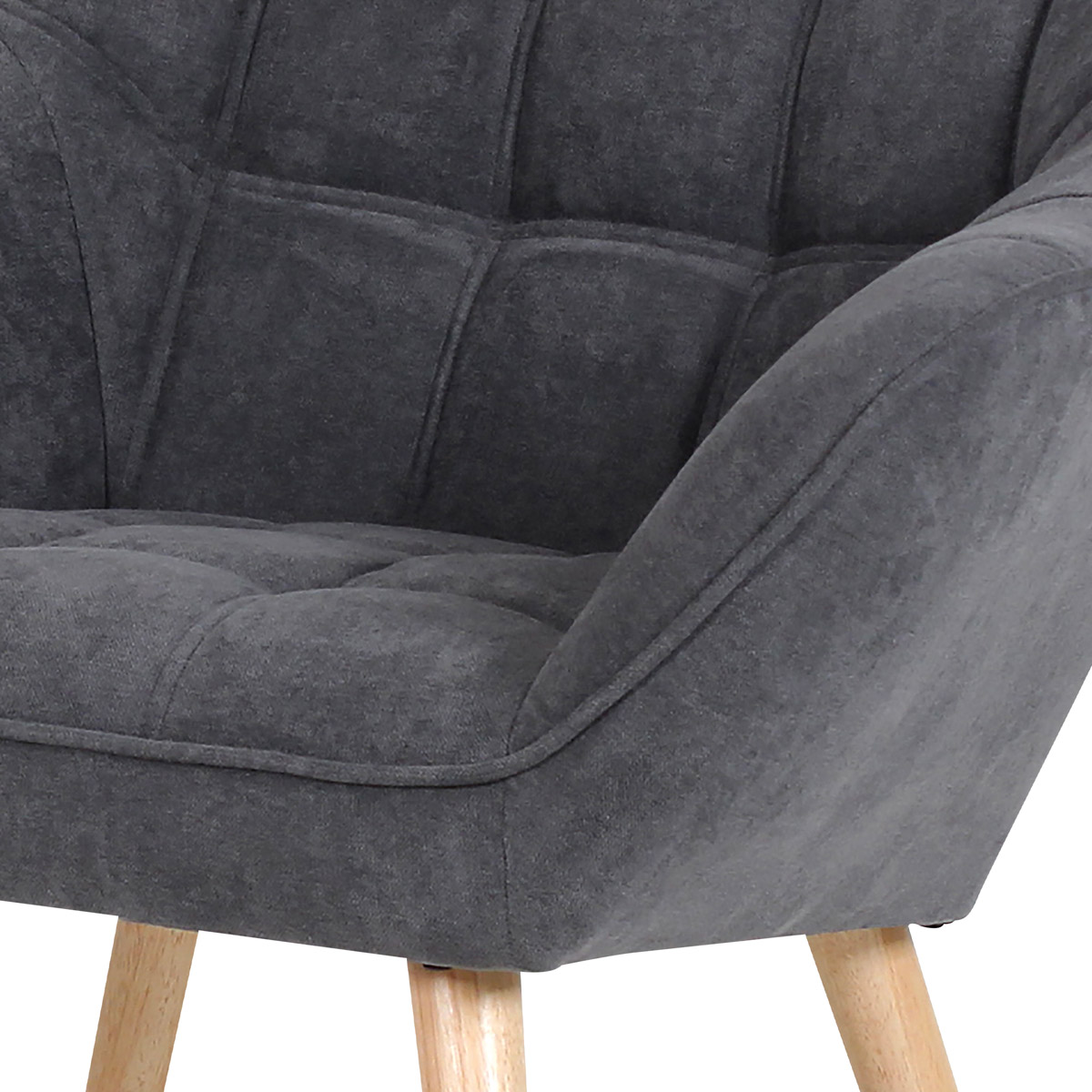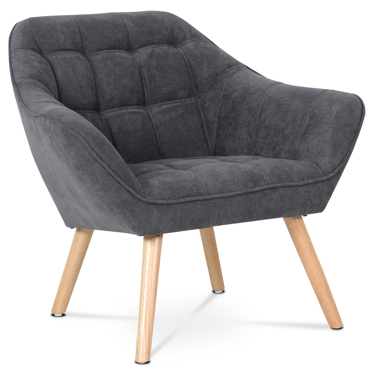 Kreslo v škandinávskom štýle s kubistickými prvkami. Charakteristickými prvkami tohto kresla je výrazné štvorcové prešitie sedadla i operadla, masívny sedací korpus s ostrými líniami v kontraste s vysokými štíhlymi nohami. Kreslo je celočalúnené, vrátane chrbta. Možno ho použiť ako na prisadenie k stene, tak aj v strede miestnosti. Môže slúžiť ako výrazný solitér aj ako doplňujúce kreslá k sedačke. Svoje uplatnenie nájde v chodbe, hale, obývačke i spálni. Poťah je z látky v tmavo šedom odtieni, kostra z masívneho dreva, vyplnené je kvalitnou PU penou. Sedáky sú ešte spevnené elastickými popruhmi na zvýšenie komfortu pohodlia. Štíhle kónické nohy sú z masívneho kaučukovníka v prírodnom odtieni a lakované transparentným lakom. Poškodenie podlahových krytín je eliminované plastovými klzákmi, pri zadných nohách sú rektifikovateľné (výškovo nastaviteľné). Svetlá výška kresla je 30 cm, výška podrúčiek je 59 cm a šírka 10 cm. Nosnosť je 130 kg. Pohodlie a vnútornú priestrannosť tohto kresla ocení určite každý. A ak si ešte opriete ruky o zvýšené podrúčky, budete dlho otáľať, kým kreslo opustíte. Kreslo sa typovo hodí k dvojsedačke AK-322.