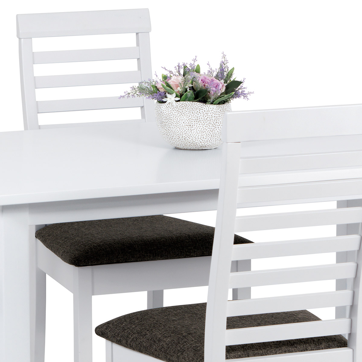 Jedálenský set 1 + 4 v bielom farebnom prevedení. Stôl aj stoličky vyrobené z masívu.