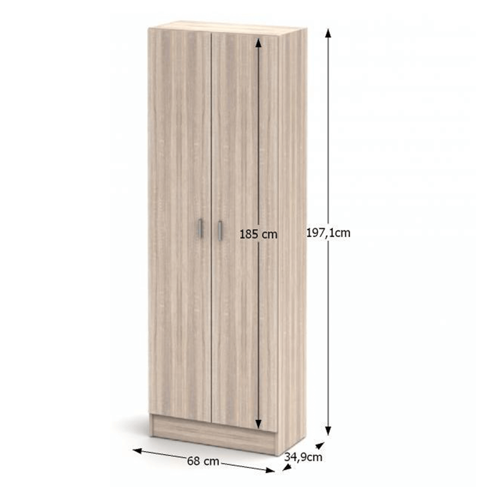 Botníková skriňa MARÍNA. Materiál: laminovaná DTD Farba: dub sonoma Rozmery (ŠxHxV): 68x34,9x197,1 cm Hrúbka materiálu: 16 mm Dodávané v demonte.
