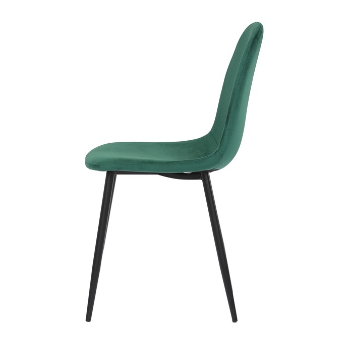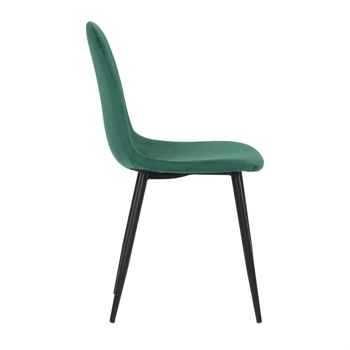 Jedálenská stolička s označením CT-971 GRN4 ponúka pohodlné sedenie vďaka čalúneniu z mäkkej zelenej zamatovej látky, ktorá dodáva interiéru príjemný vizuálny efekt a zároveň sa ľahko udržiava. Pevné nohy z čierneho matného kovu zabezpečujú stabilitu a dlhú životnosť stoličky. Ergonomicky tvarované sedadlo a operadlo podporujú správne držanie tela počas stolovania. Stolička nemá podrúčky ani otočný mechanizmus, čo ju robí kompaktnou a vhodnou do rôznych priestorov. Je určená predovšetkým do jedálenských priestorov, kde kombinuje komfort s moderným dizajnom.