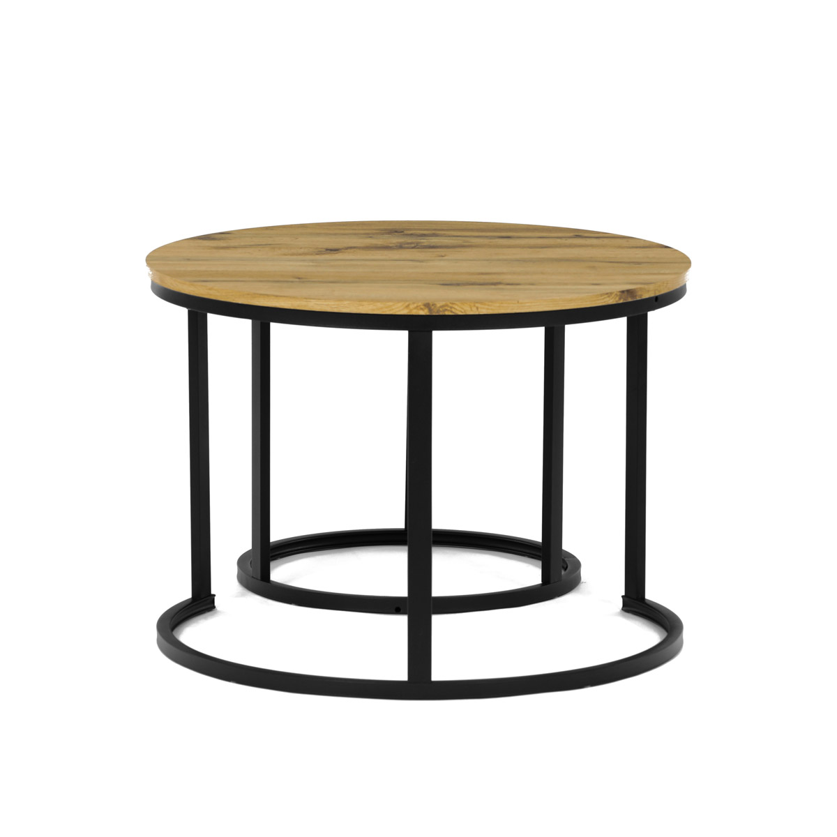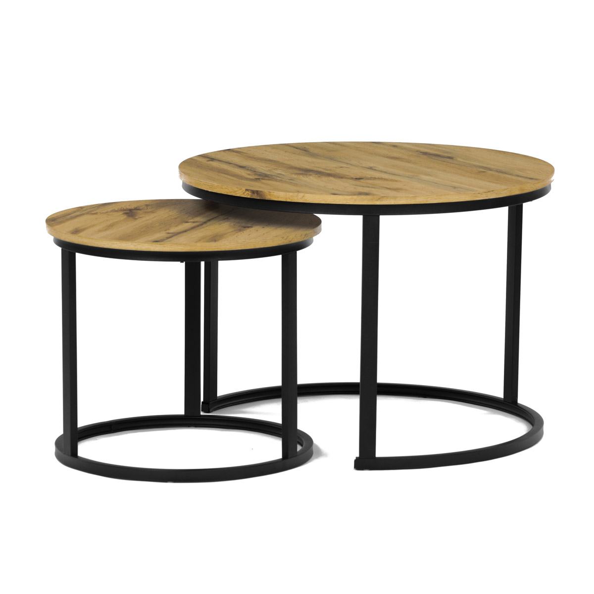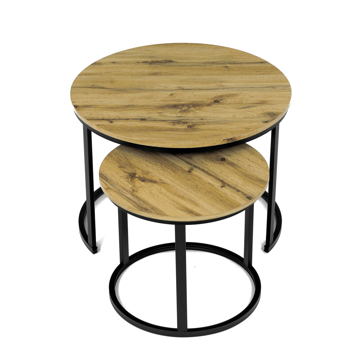 Súprava dvoch konferenčných stolíkov značky Autronic v industriálnom štýle prinesie do vašej obývačky eleganciu a praktickosť. Dosky z MDF s dekorom divokého duba v kombinácii s čiernymi kovovými nohami vytvárajú štýlový kontrast. Kruhový dizajn a možnosť menšie stolík ľahko umiestniť pod väčšiu ponúka flexibilitu pre úsporu miesta. Matný povrch dosky je ľahko udržiavateľný a odolný voči poškodeniu. Tento set je ideálny ako pre menšie priestory, tak aj pre interiéry, kde vynikne svojim moderným vzhľadom a funkčným dizajnom.