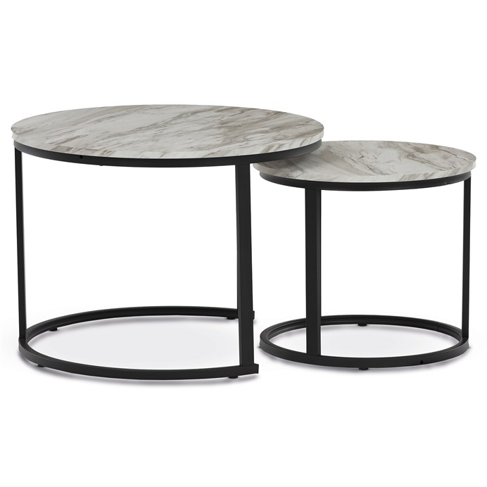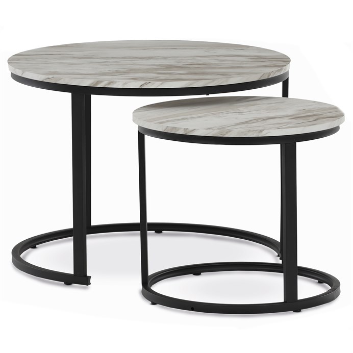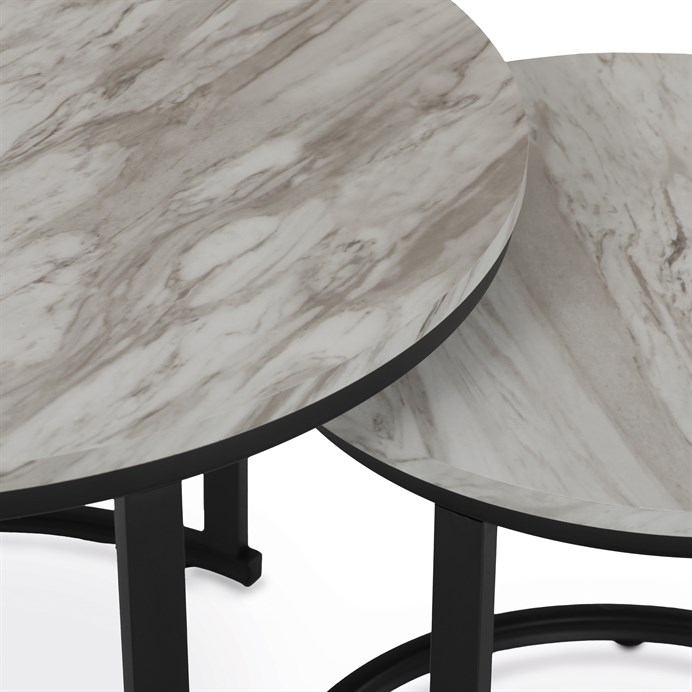 Súprava dvoch konferenčných stolíkov značky Autronic v industriálnom štýle prinesie do vašej obývačky eleganciu a praktickosť. Dosky z MDF s dekorom bieleho mramoru v kombinácii s čiernymi kovovými nohami vytvárajú štýlový kontrast. Okrúhly dizajn a možnosť jednoduchého zasunutia menšieho stolíka pod väčší ponúkajú flexibilitu a úsporu miesta. Matný povrch sa ľahko udržiava a je dostatočne odolný. Táto súprava je ideálna ako do menších priestorov, teda aj do interiéru, kde moderný dizajn je považovaný za funkčný.