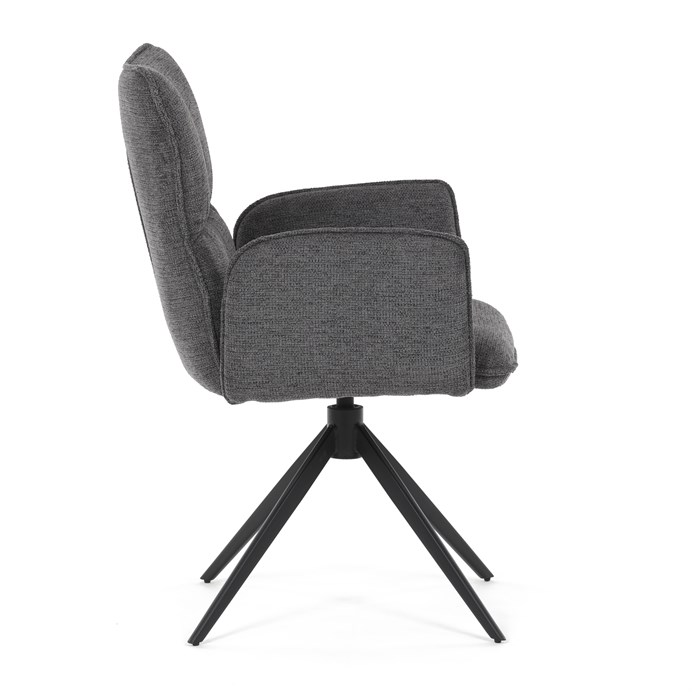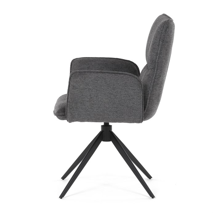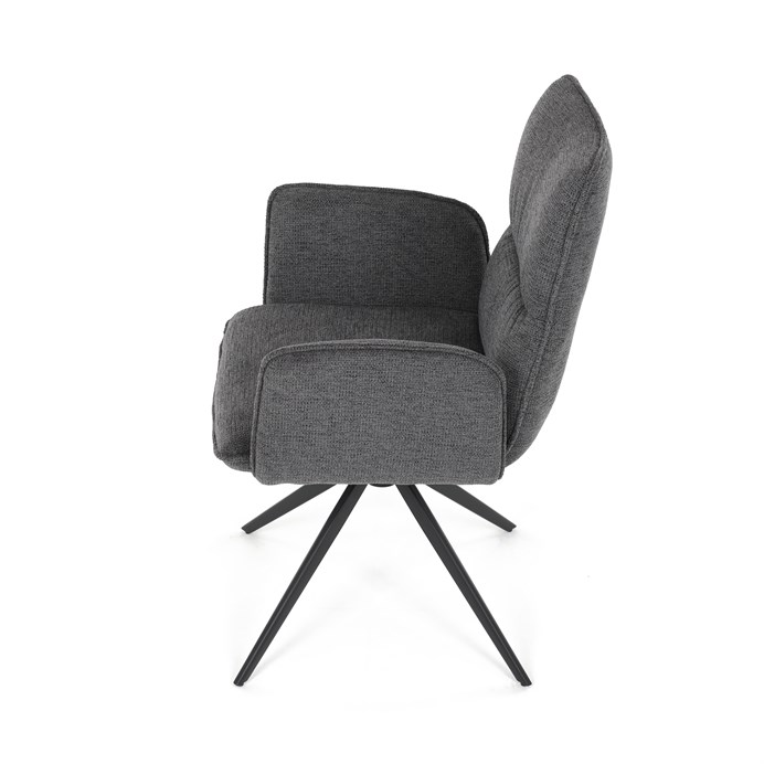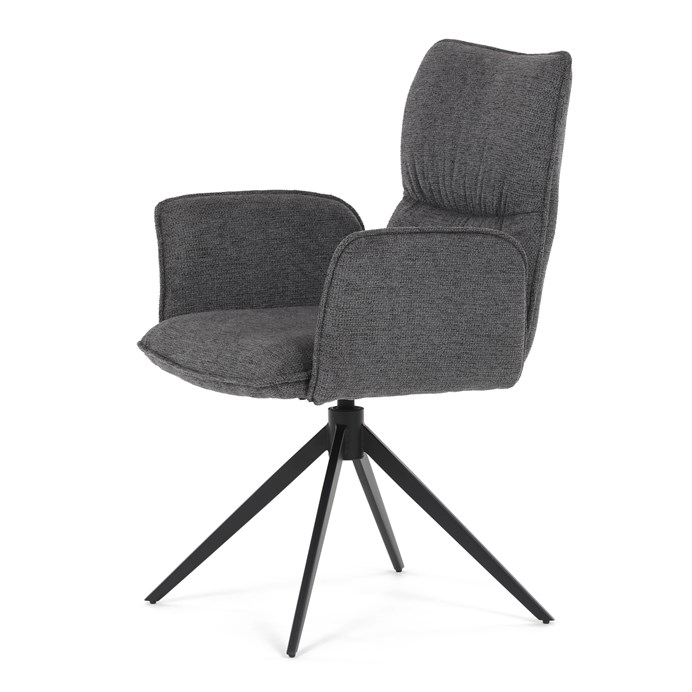 Jedálenská stolička DCH-D1328 GREY2 značky Autronic vyniká 360° vratným mechanizmom, ktorý umožňuje plynulý a tichý otočný pohyb pre maximálnu flexibilitu pri sedení. Čalúnenie z kvalitnej sivej látky poskytuje príjemný a mäkký povrch s decentnou textúrou, ktorá zvyšuje komfort aj estetickú hodnotu. Konštrukcia podrúčok je pevne integrovaná do čalúnenej časti, čo zabezpečuje pohodlnú oporu paží počas sedenia. Stabilná podnož je vyrobená z čierne práškovo lakovaného kovu, ktorý garantuje vysokú pevnosť a odolnosť proti opotrebeniu, pričom dizajn podnože pozostáva zo štyroch uhlových nôh rozložených do širokého stabilného tvaru. Ergonomicky tvarovaný sedák a operadlo podporujú správne držanie tela a prispievajú k dlhodobému pohodliu pri používaní. Stolička je vhodná pre moderné jedálne aj pracovné priestory, kde je požadovaná kombinácia komfortu a funkčnosti. Nosnosť stoličky zodpovedá štandardným požiadavkám na jedálenské sedenie a jej rozmery sú optimalizované pre univerzálne použitie v interiéri.