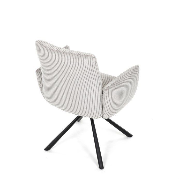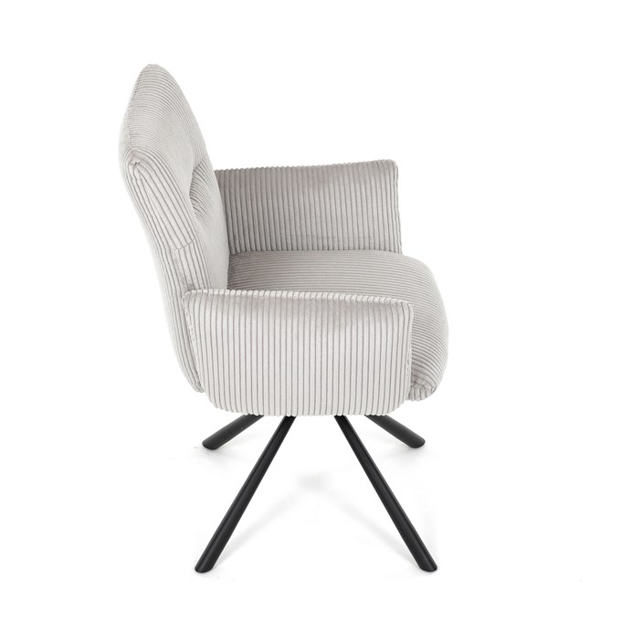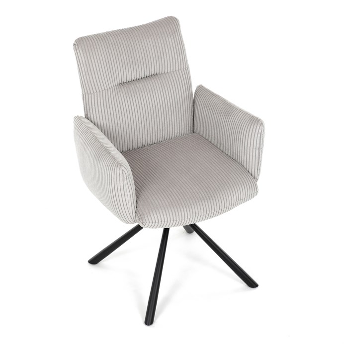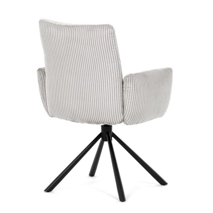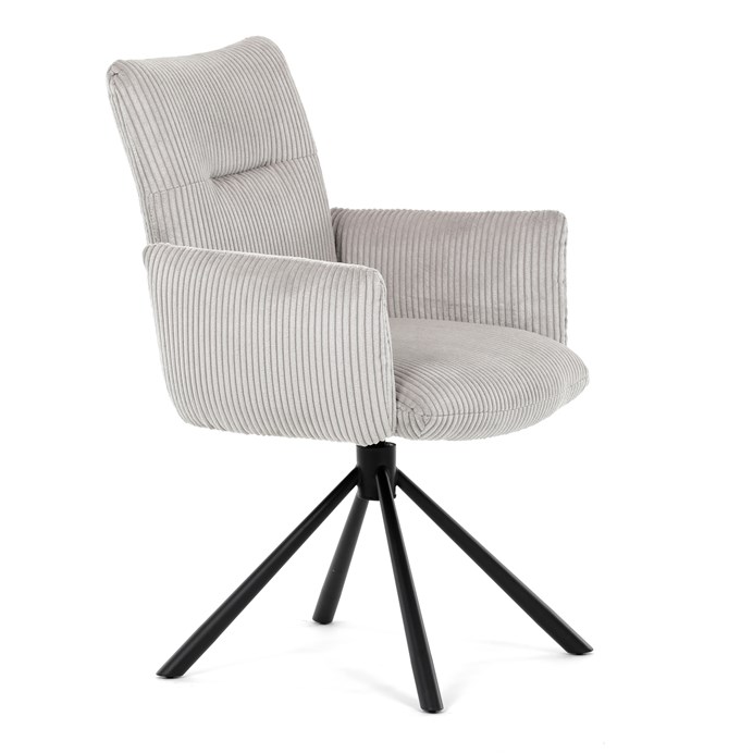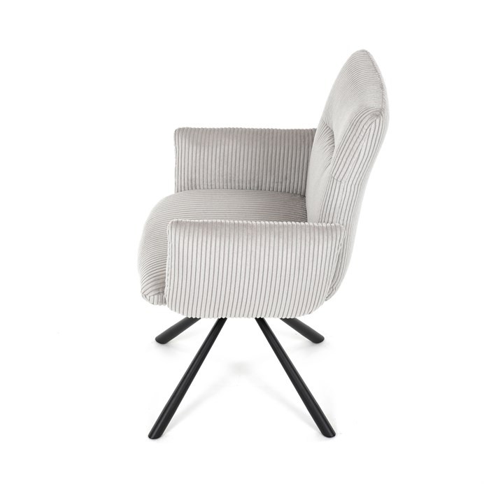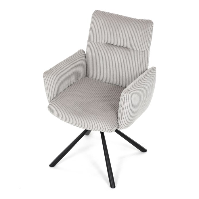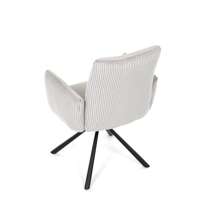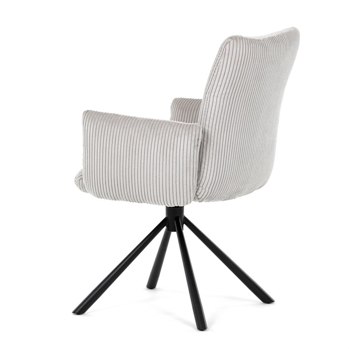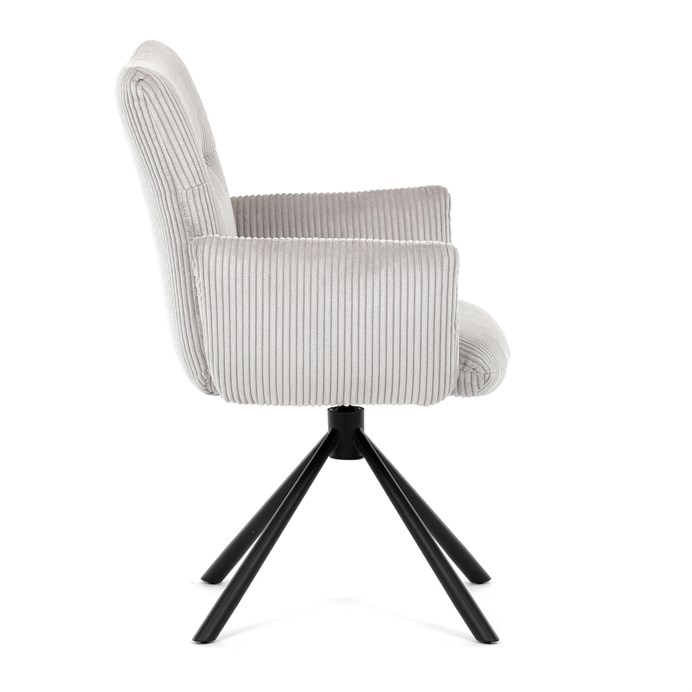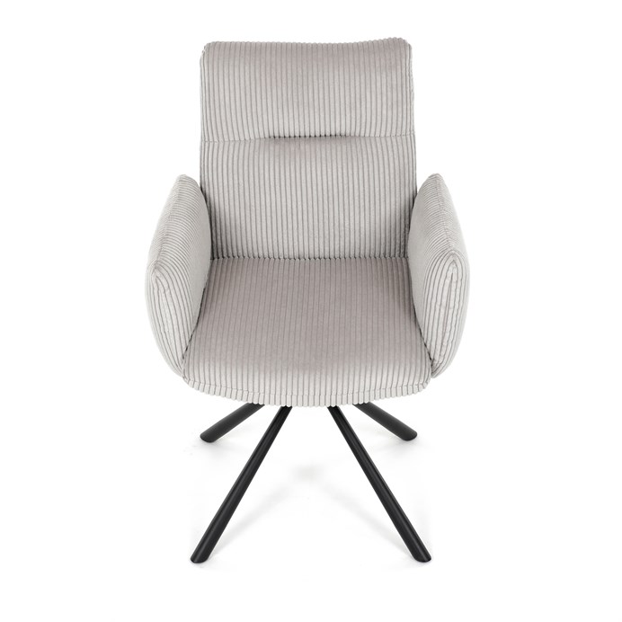 Jedálenská stolička DCH-D1332 CRM2 značky Autronic v krémovej manšestrovej látke spája elegantný dizajn s vysokým komfortom sedenia vďaka výraznému polstrovaniu sedáka, operadla a podrúčok. Poťah z jemnej manšestrovej látky zabezpečuje príjemný dotyk a vizuálne podčiarkuje nadčasový vzhľad stoličky. Konštrukcia nôh je vyrobená z čierne práškovo lakovaného kovu, ktorý poskytuje stabilitu a dlhodobú odolnosť proti opotrebeniu. Otočný 360° vratný mechanizmus umožňuje plynulý a tichý pohyb, čo zvyšuje ergonómiu a uľahčuje manipuláciu so stoličkou v jedálenskom priestore. Vyššie polstrovanie prispieva k pohodlnému sedení aj pri dlhšom používaní, zatiaľ čo pevné podrúčky podporujú správnu polohu paží a prispievajú k celkovej ergonómii. Vďaka kombinácii kvalitných materiálov a funkčných prvkov je stolička vhodná pre moderné jedálne aj reprezentatívne priestory s nosnosťou zodpovedajúcou bežnému domácemu používaniu.