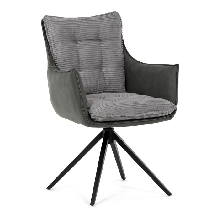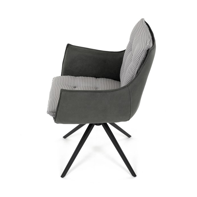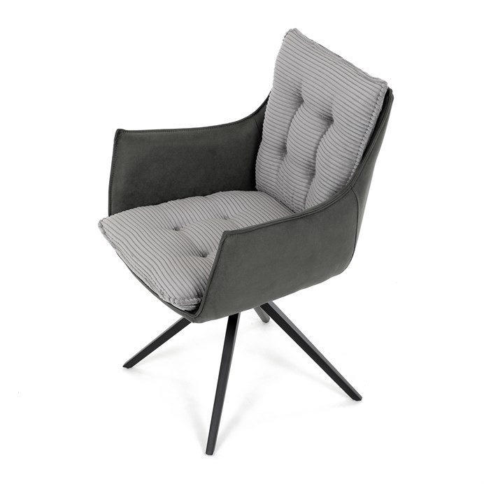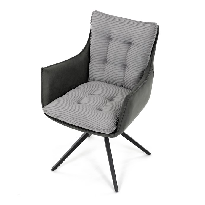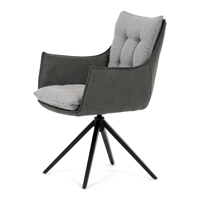 Jedálenská stolička DCH-D1345 GREY2 značky Autronic vyniká otočným 360° vratným mechanizmom, ktorý zabezpečuje plynulý a tichý návrat do východiskovej polohy, čo prispieva k pohodliu a praktickosti pri používaní. Konštrukcia stoličky kombinuje pevný čierny kovový rám s moderným dizajnom štvornohej podnože, ktorá zaručuje stabilitu a dlhú životnosť. Sedák a operadlo sú potiahnuté kombináciou dvoch typov sivej látky, pričom vnútorná časť tvorí mäkký, rebrovaný textil s vysokým polstrovaním, ktoré poskytuje ergonomickú podporu a komfort aj pri dlhšom sedení. Čalúnenie je starostlivo prešité a tvarované tak, aby zvýraznilo estetiku a zároveň zabezpečilo dostatočnú priedušnosť materiálu. Podrúčky sú integrované do celkovej konštrukcie sedáka, čo zvyšuje komfort bez obmedzenia pohybu. Vďaka kombinácii kvalitných materiálov a funkčných prvkov je stolička vhodná pre moderné jedálne aj pracovné priestory, kde je kladený dôraz na dizajn aj používateľský komfort.