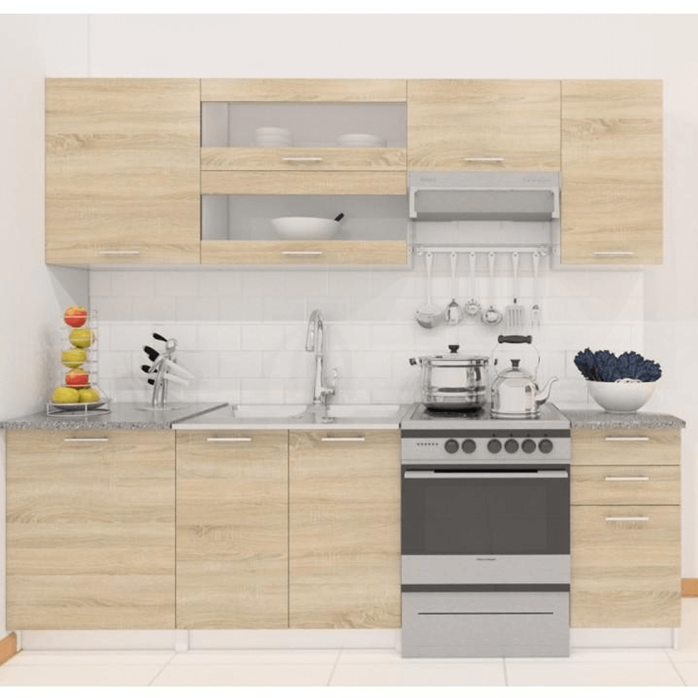 Skrinky základnej zostavy sú dodávané vrátane pracovnej dosky, drezová skrinka je dodávaná bez pracovnej dosky. Sektorové skrinky sú dodávané bez pracovnej dosky.