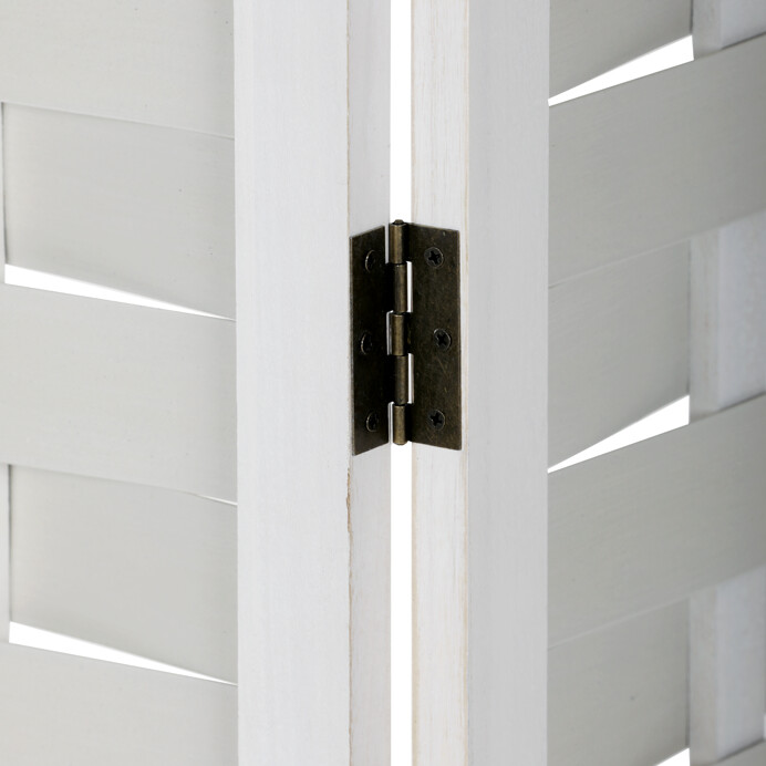 Trojdielny paraván vyrobený z masívneho smrekového dreva v bielej farbe ponúka praktické riešenie na rozdelenie priestoru aj dekoratívny doplnok interiéru. Každá časť je spojená kovovými pántmi, ktoré umožňujú jednoduché skladanie a nastavenie uhla podľa potreby. Povrchová úprava zvýrazňuje prirodzenú štruktúru dreva a zároveň uľahčuje údržbu. Paraván je stabilný a vďaka masívnemu prevedeniu navrhnutý pre dlhú životnosť. Je vhodný do rôznych typov interiérov, kde prispieva k vytvoreniu súkromia alebo optickému oddeleniu zón. Rozmer jedného dielu 40x171cm.