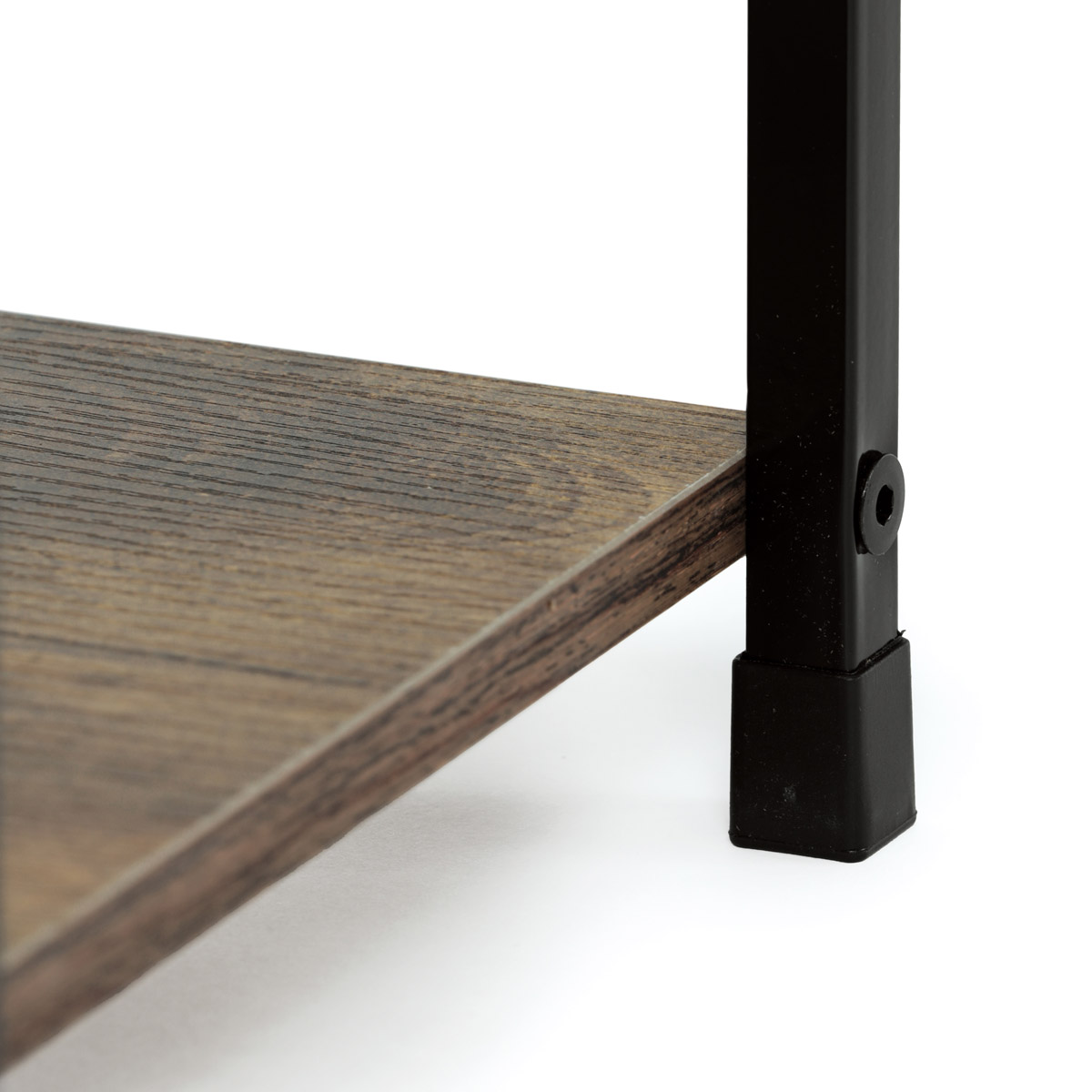 Predstavujeme vám praktický trojposchodový regál značky Autronic v industriálnom štýle. Tento elegantný kúsok v hnedej farbe kombinuje pevný kovový rám s doskami z MDF s dekórom starého dreva. Jeho kompaktné rozmery umožňujú ľahké umiestnenie do každej obývačky, kde poskytne dostatok priestoru pre vaše dekorácie, knihy či ďalšie drobnosti.
