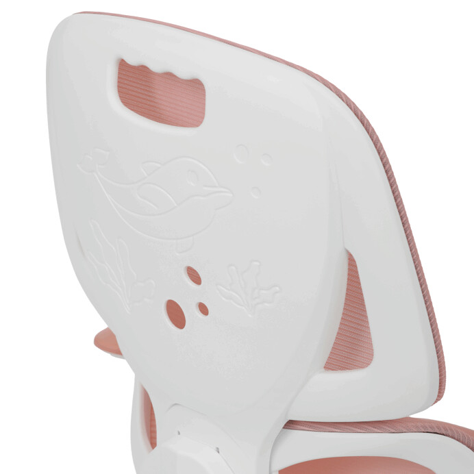 Detská stolička s ružovou sieťovinou ponúka moderný a vzdušný dizajn vhodný pre mladších používateľov. Operadlo aj sedák sú potiahnuté jemnou ružovou sieťovinou, ktorá zabezpečuje dobrú cirkuláciu vzduchu a príjemný komfort pri sedení. Výškovo nastaviteľné operadlo a odklápacie podrúčky umožňujú prispôsobenie stoličky aktuálnym potrebám dieťaťa, zatiaľ čo pevný biely plastový kríž s kolieskami určenými na tvrdé podlahy zaisťuje stabilitu a ľahkú mobilitu. Bedrová opierka podporuje správne držanie tela počas práce alebo hry. Celková konštrukcia je navrhnutá tak, aby poskytovala ergonomickú podporu a dlhodobé pohodlie.