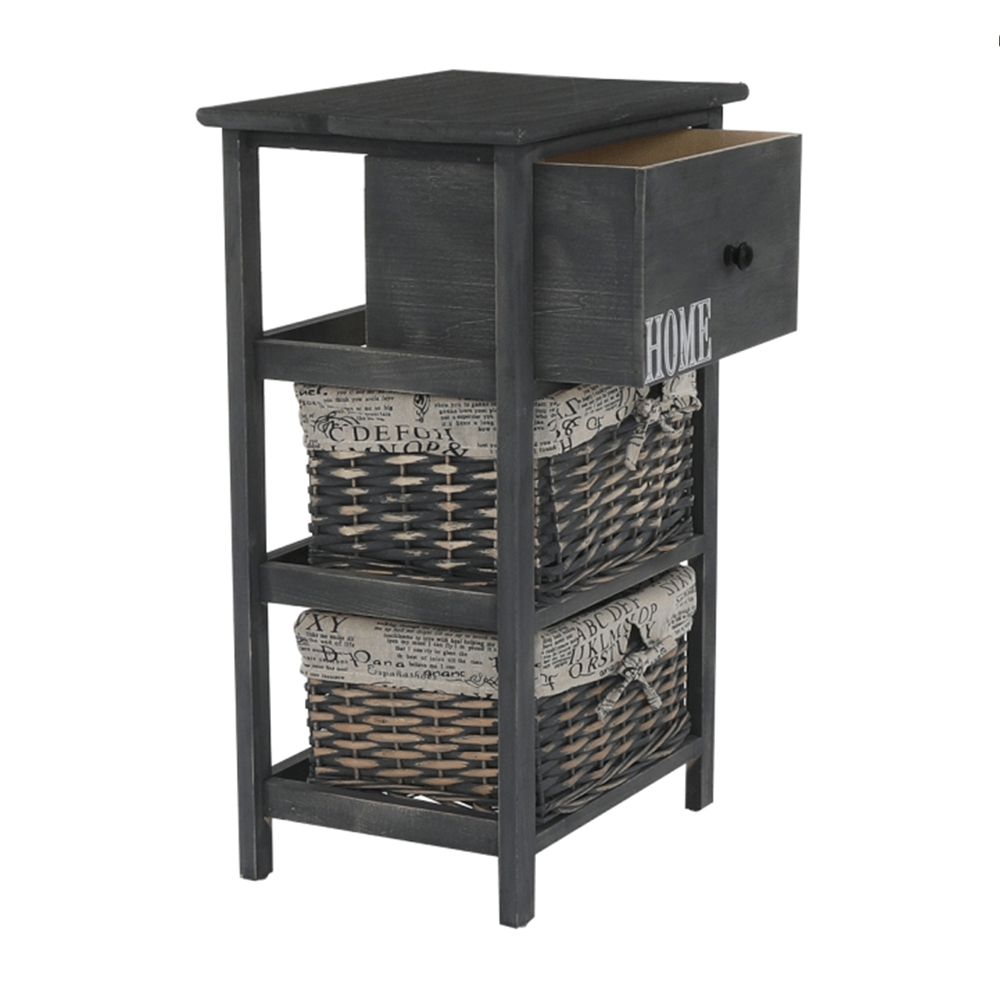 Komoda s pevným rámom, S funkčnou zásuvkou a 2 prútenými košíkmi, Materiál: drevo / prútie Farebné prevedenie: tmavo hnedá, ŠxVxH: 40x63x29 cm.