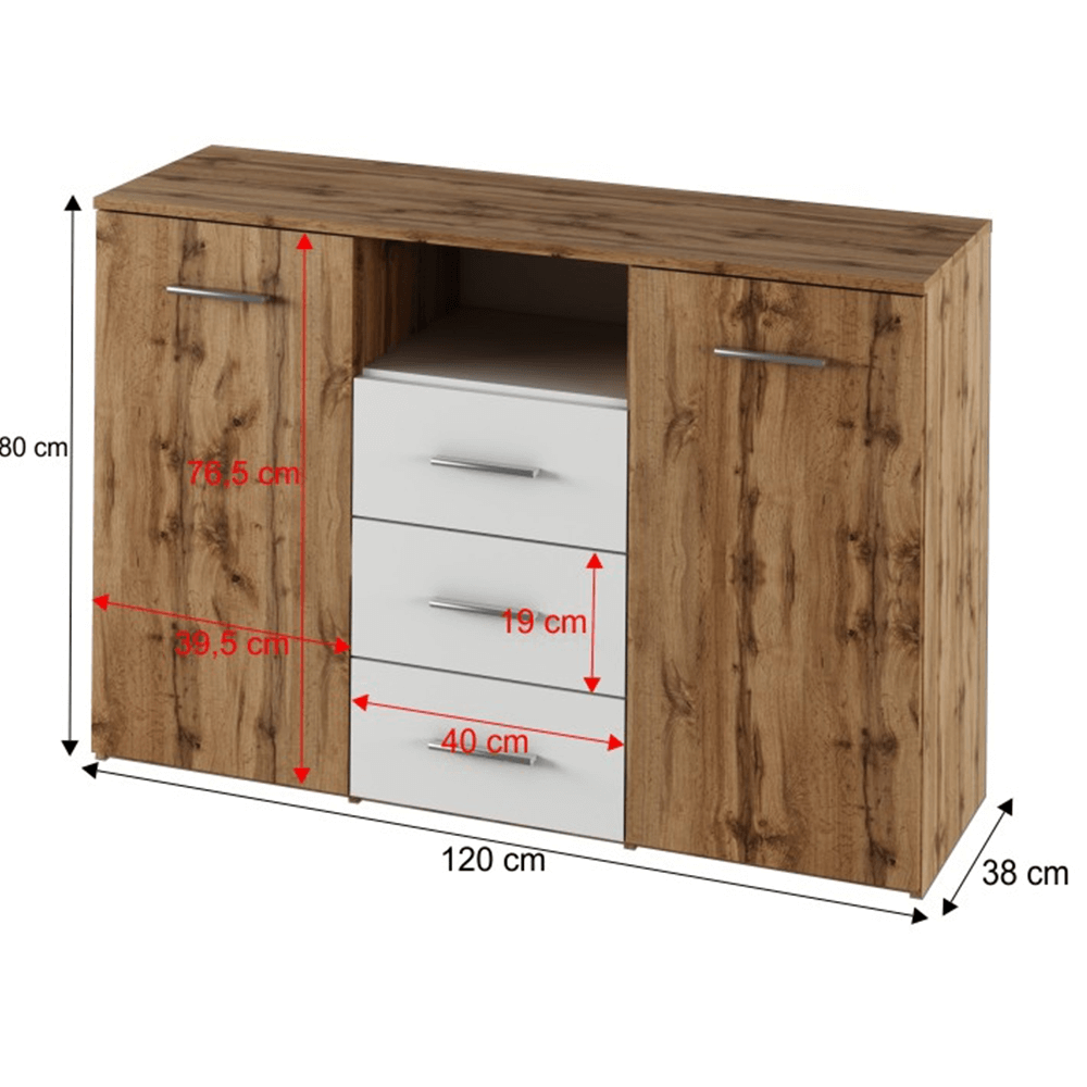 Komoda dvojdverová s troma šuplíkmi GABRIELA