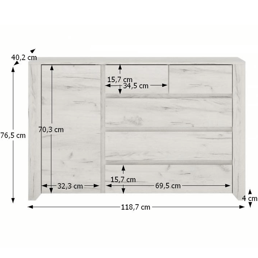 Komoda TYP 41 zo sektorovej zostavy ANGEL so skrinkou, dvoma menšími a troma väčšími šuplíkmi