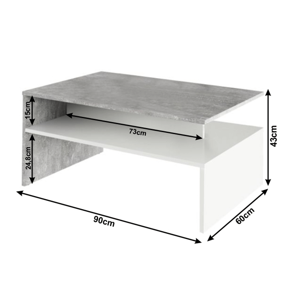 Materiál: laminovaná DTD Farba: betón/biela Rozmery (ŠxHxV): 90x60x43 cm Hrúbka lamina: 16 mm S otvorenou úložnou plochou Dodávané v demonte