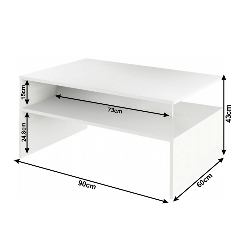 Materiál: laminovaná DTD Farba: biela Rozmery (ŠxHxV): 90x60x43 cm Hrúbka lamina: 16 mm S otvorenou úložnou plochou Dodávané v demonte