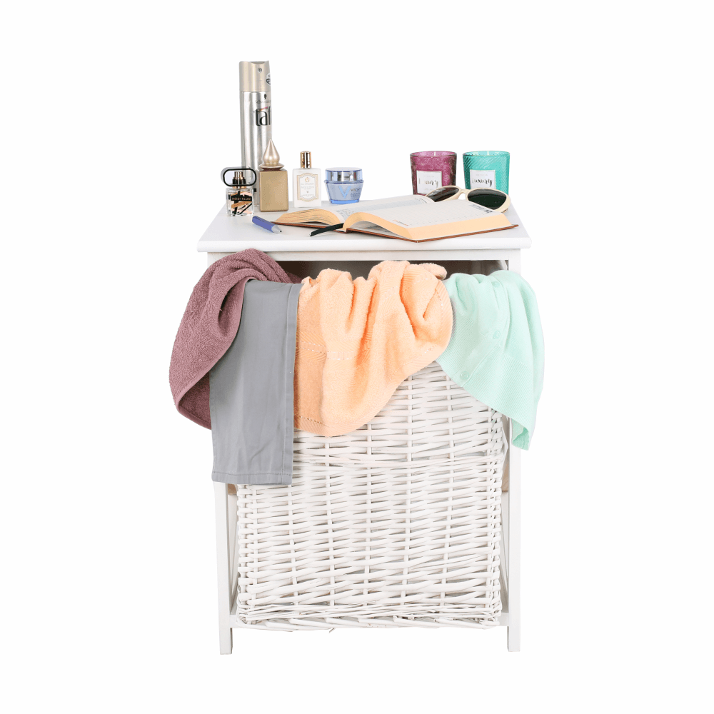 Kôš na bielizeň RAFAELLO Materiál: prútie/drevo/látka Farba: biela Rozmery (ŠxHxV): 46x46x60 cm Dodávané v monte.