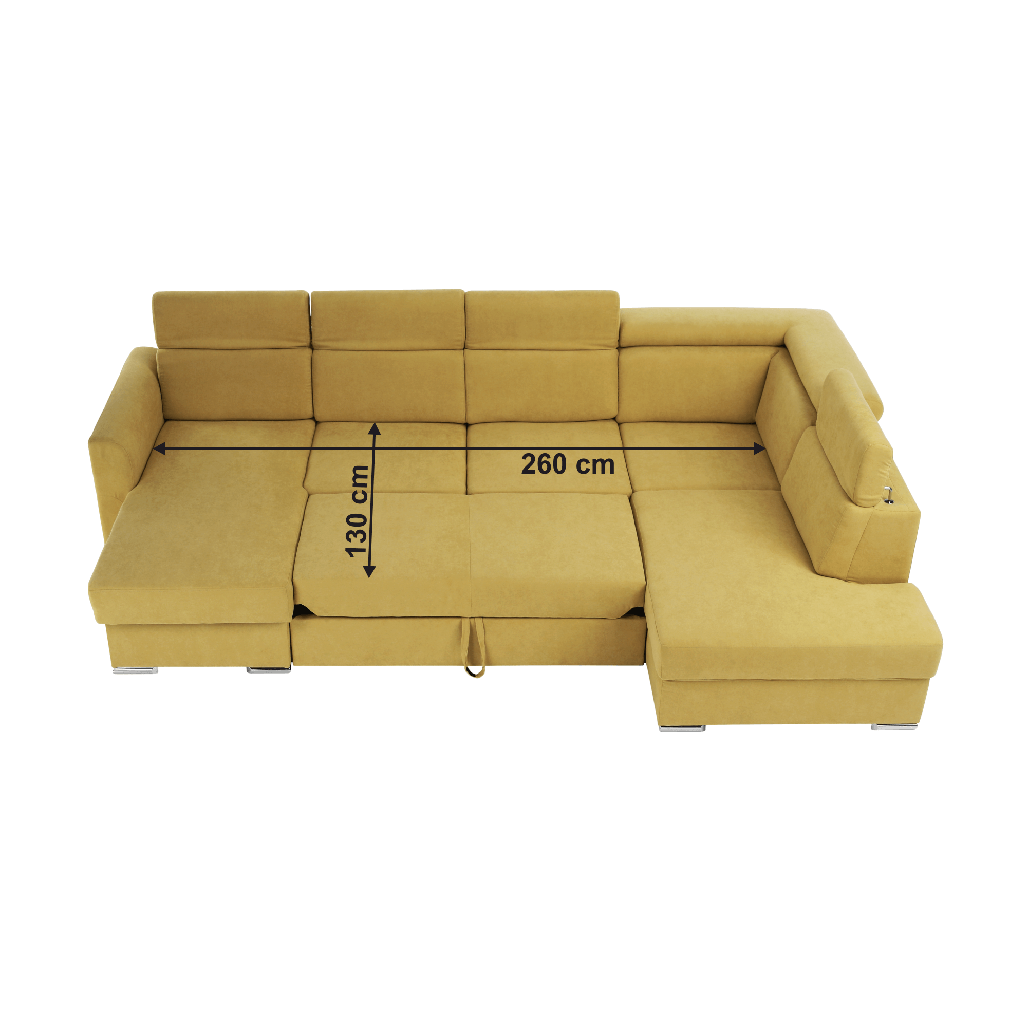 Rozmery: (ŠxHxV): 320x208-175x83-97 cm, plocha na spanie (ŠxD): 130x260cm