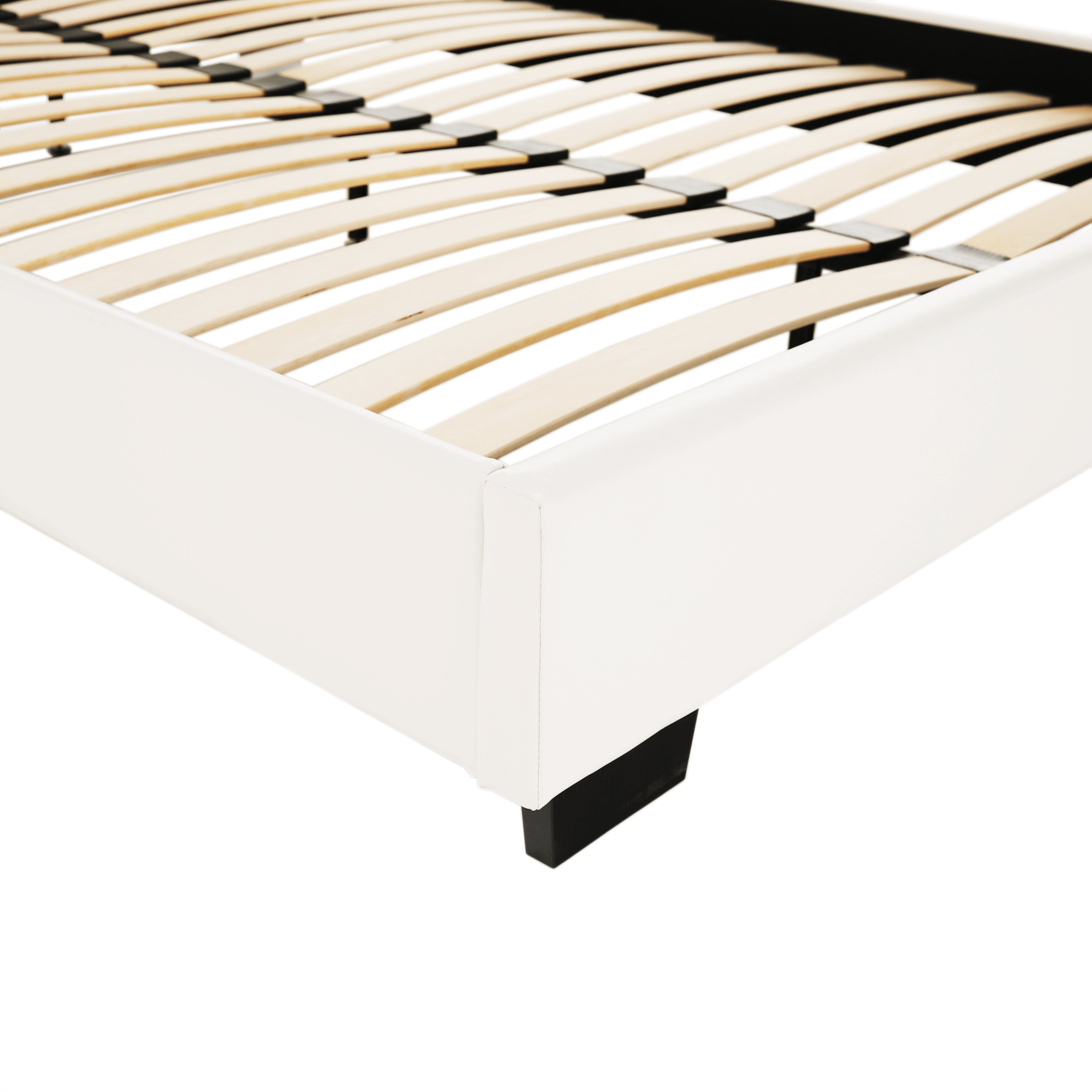 Posteľ MIKEL s prešívaným čelom, s lamelovým roštom. Farebné prevedenie biela ekokoža.