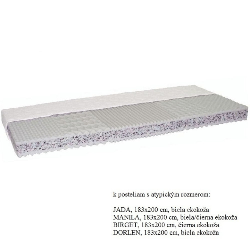 SILVER /100% polyester/, ľahko snímateľný, zips po celom obvode, prať pri 60°C. Matrac je v atypickom rozmere 183x200 cm. Nosnosť: cca 110 kg. Tvrdosť matraca: tvrdý T4