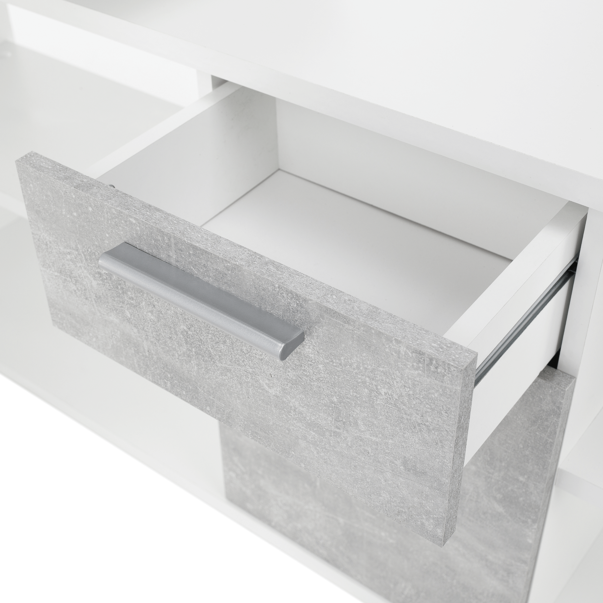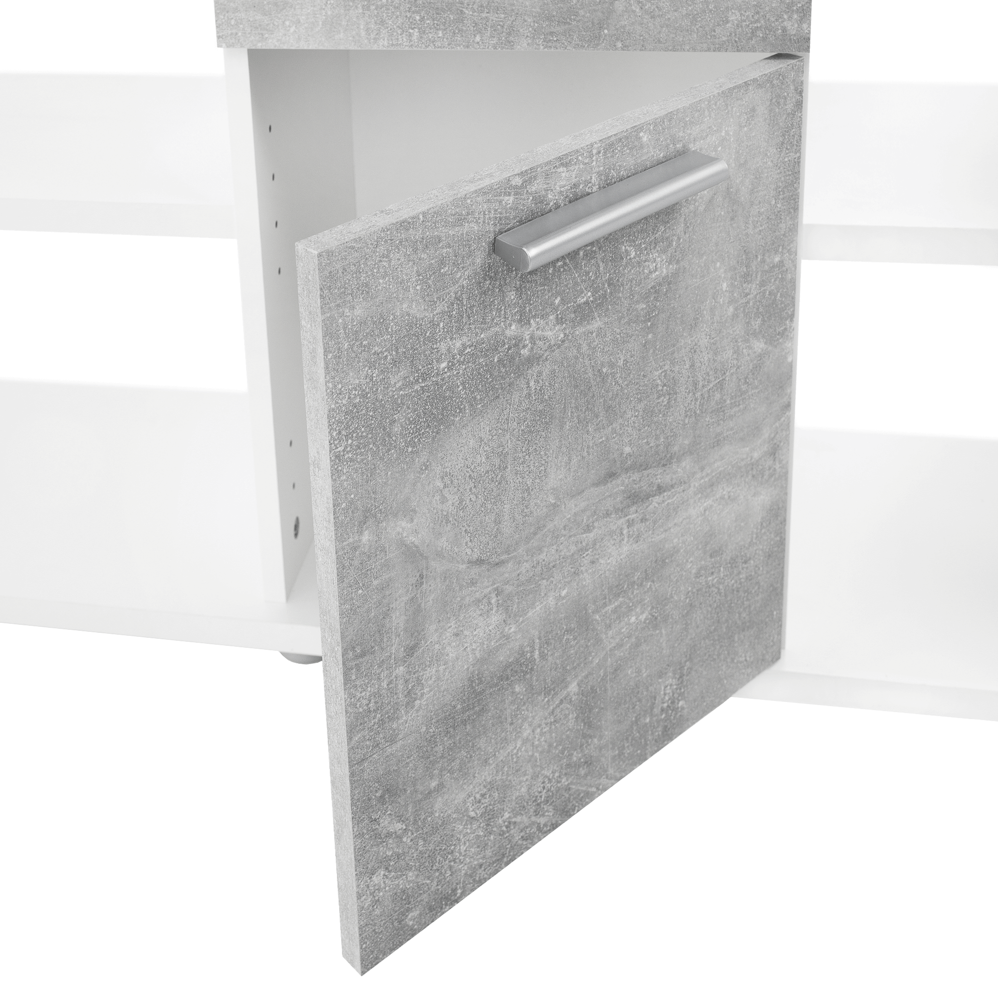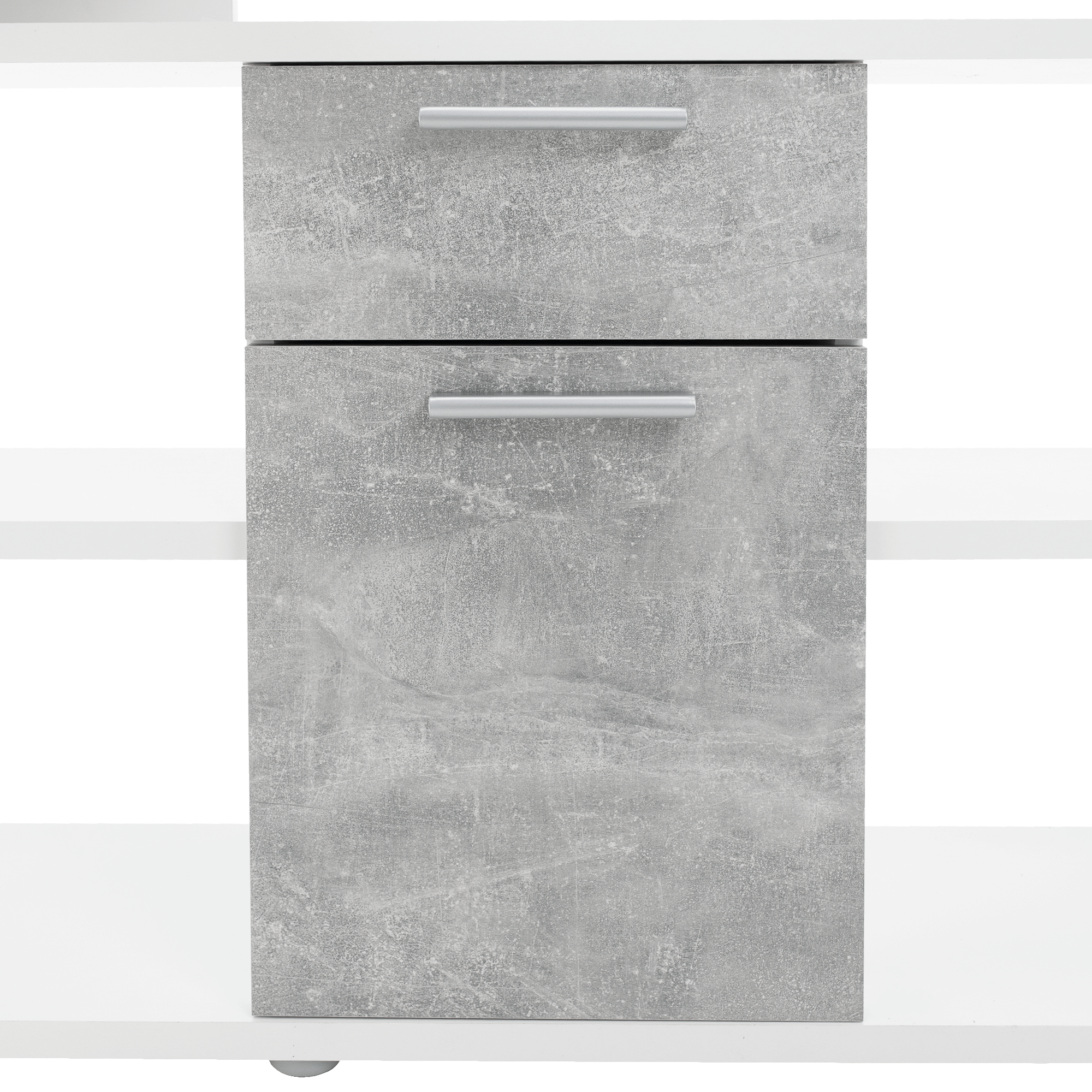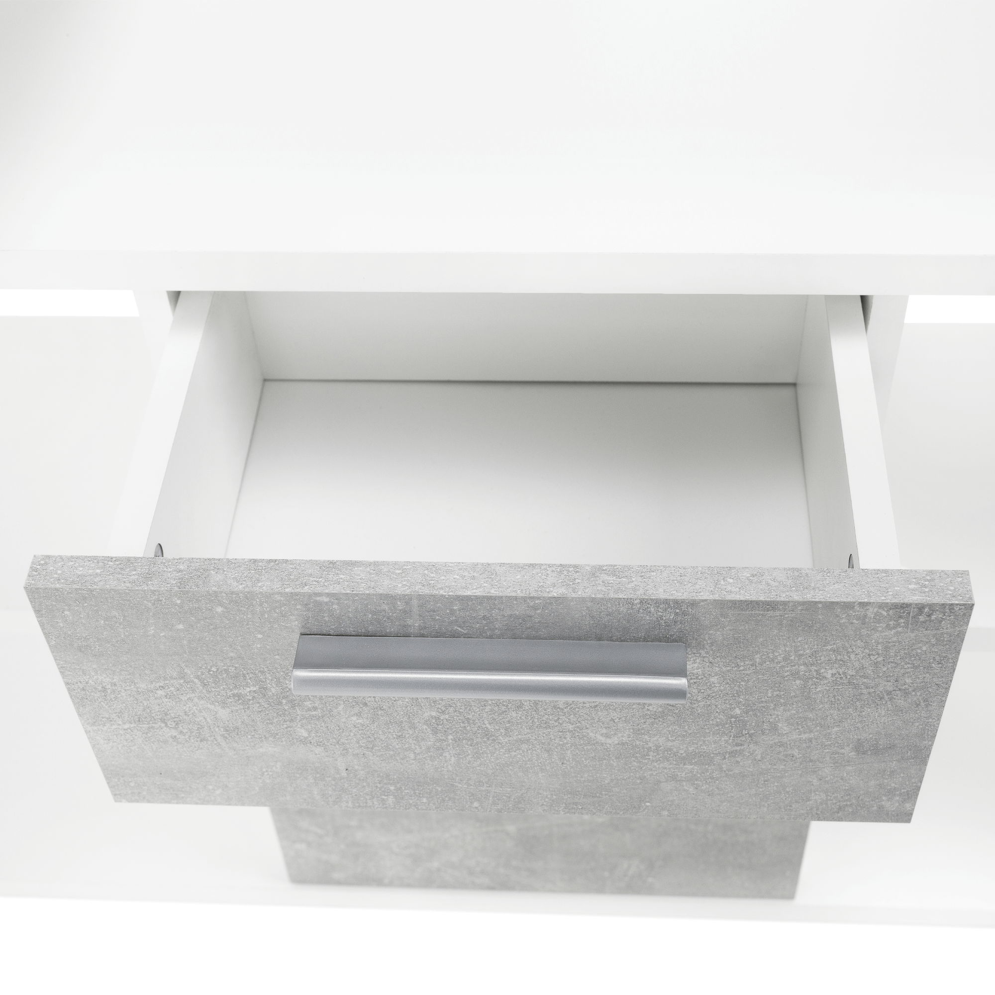 PC stôl, biela/betón, NOE NEW