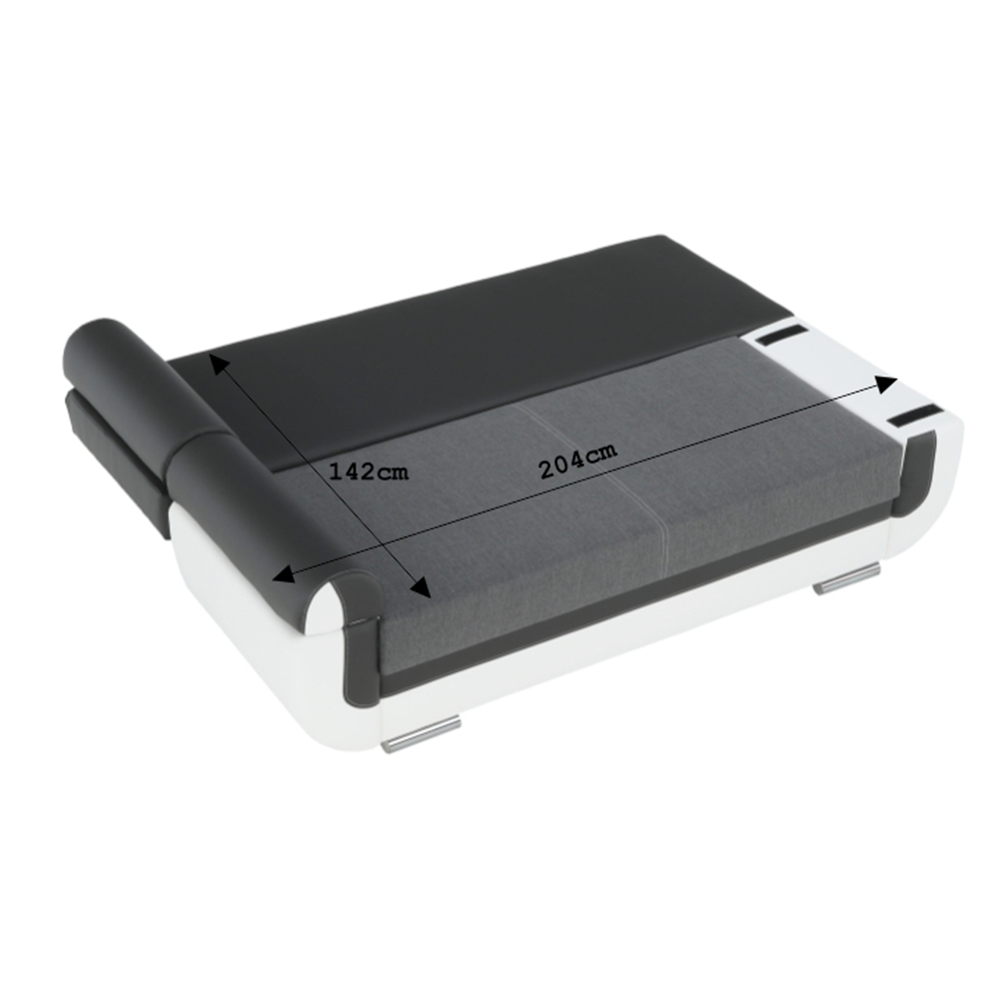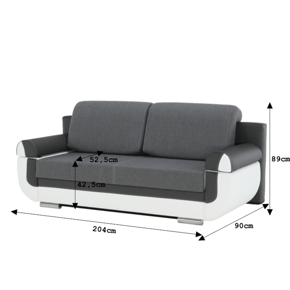 Rozmery ŠxVxH: 204x89x90 cm, plocha na spanie: ŠxD: 142x204 cm.