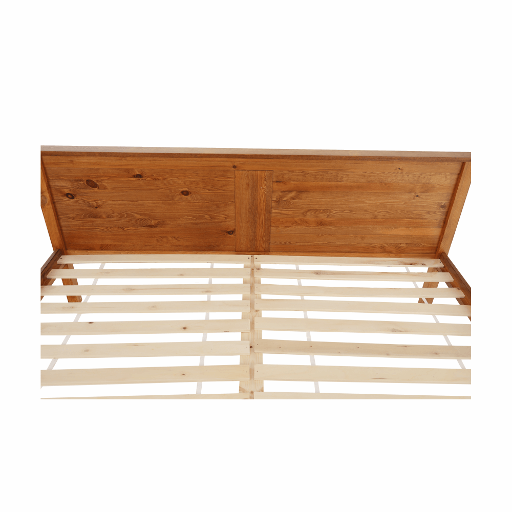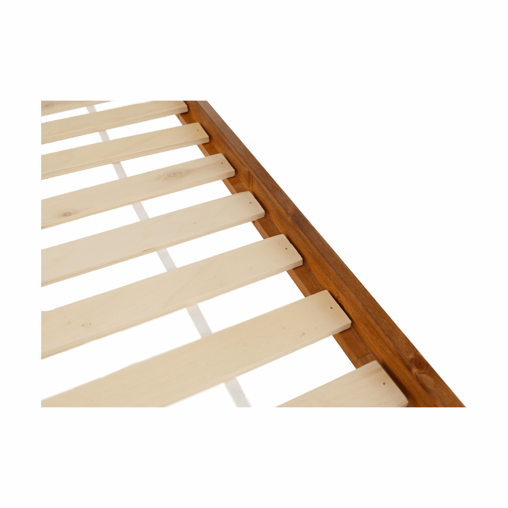 Posteľ dodávaná v demonte s rolovaným roštom, bez matraca.