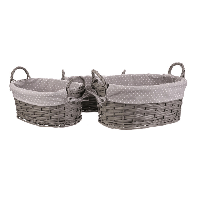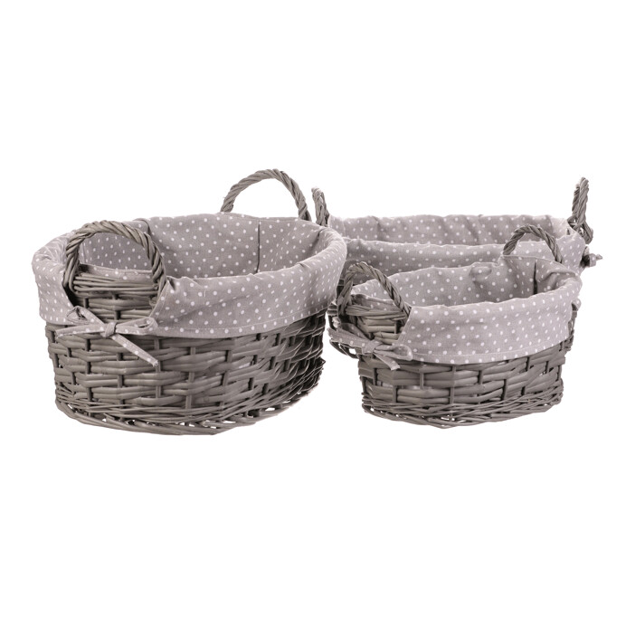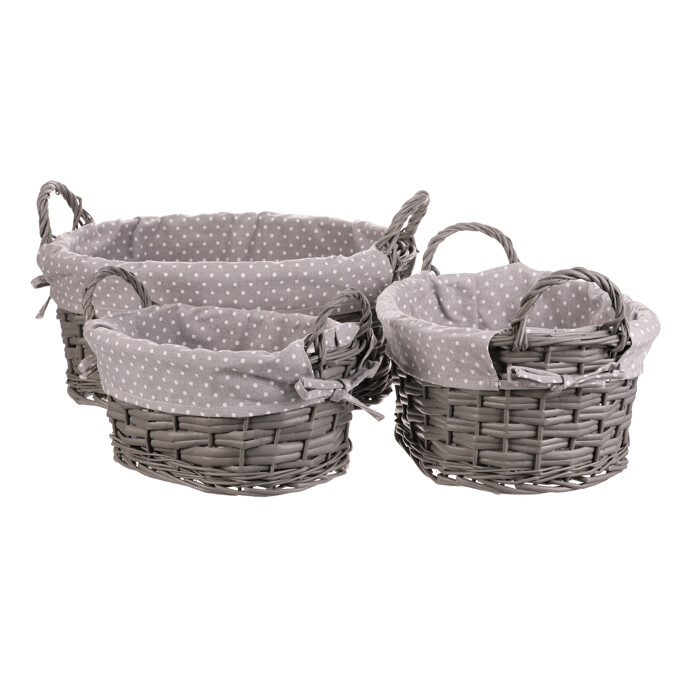 PRN2012 GREY Kôš prútený - oválny, s látkou, sivý, cena za sadu 3 ks