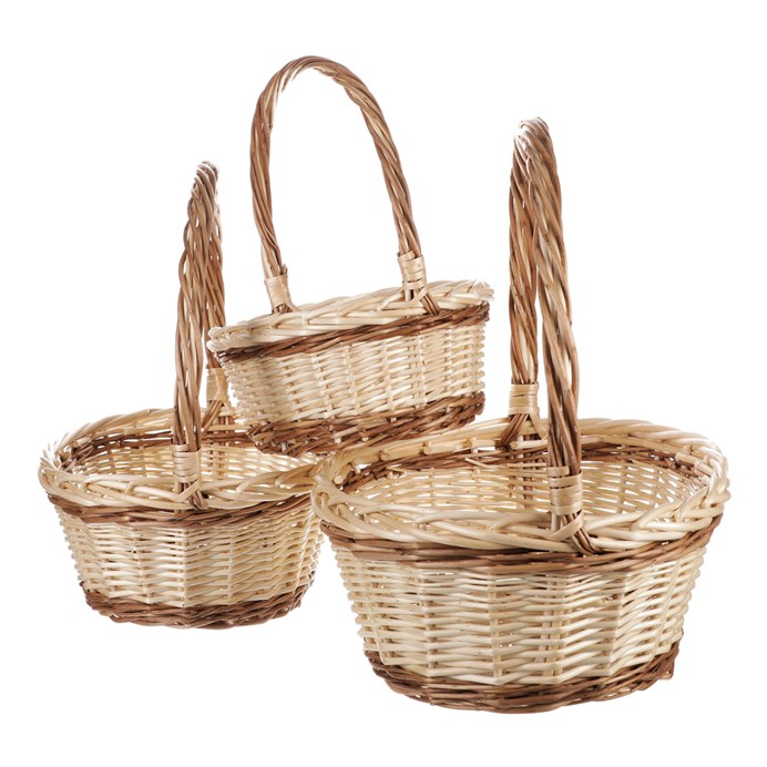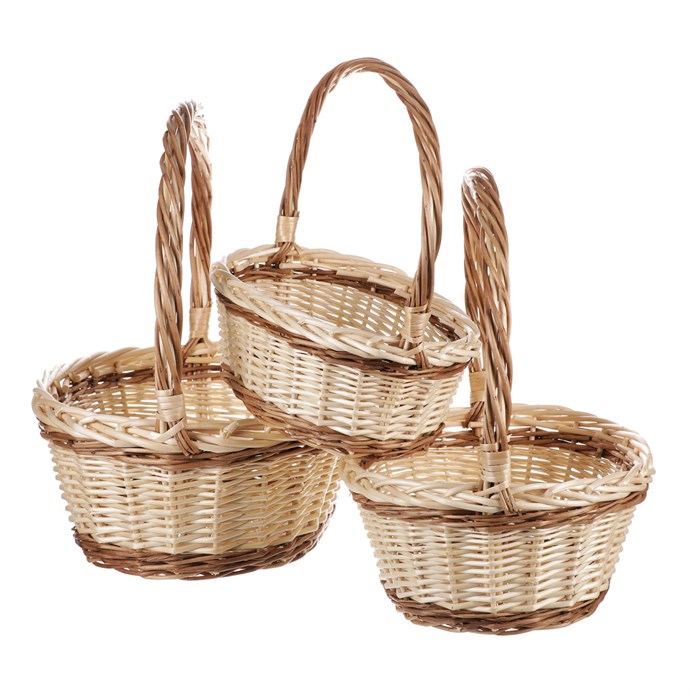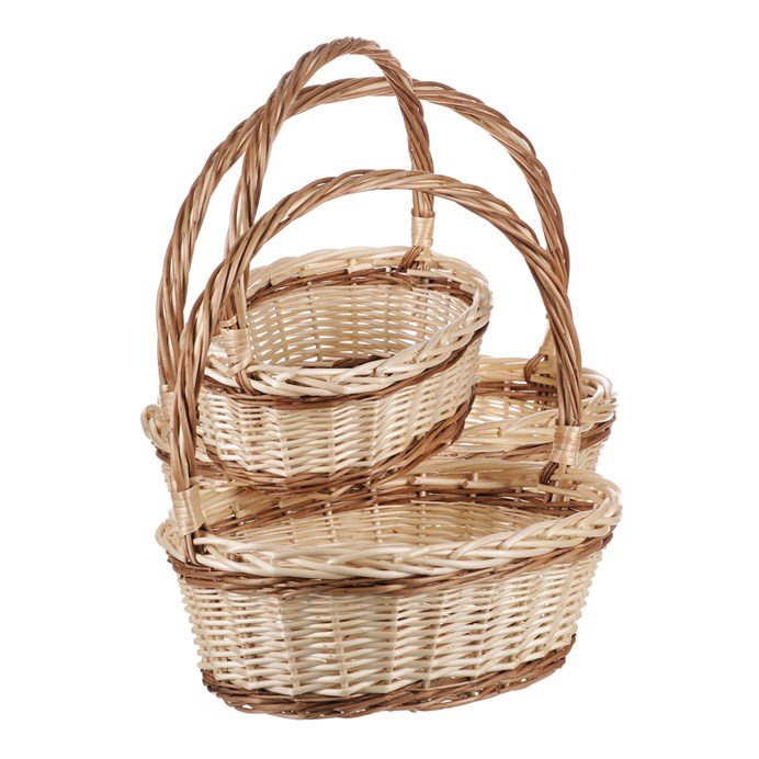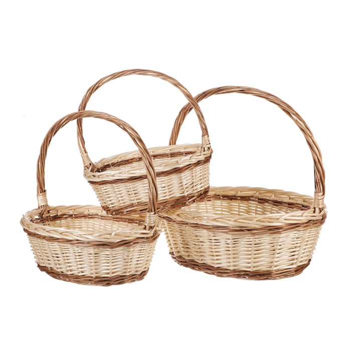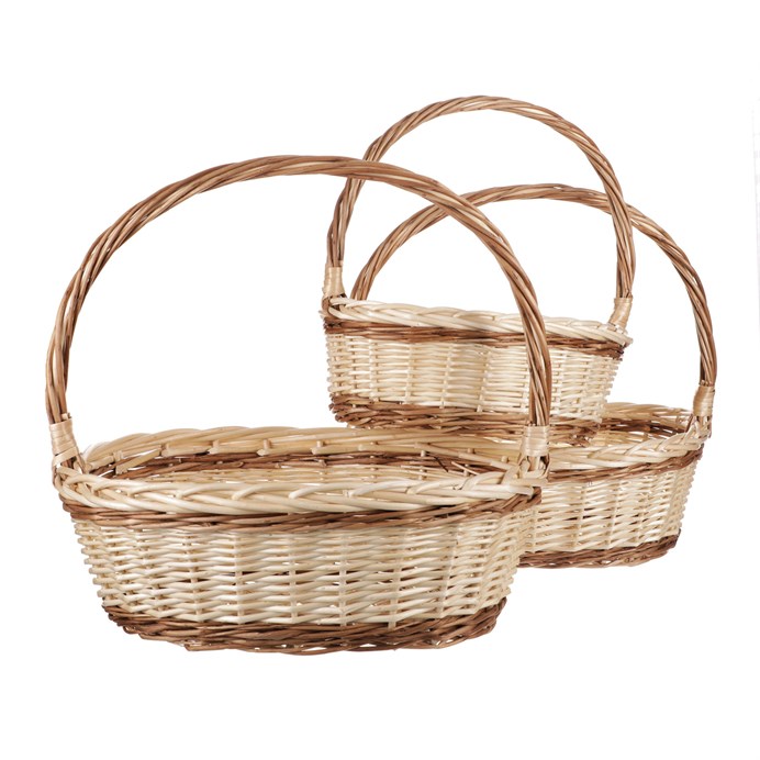PRN2018 NAT Kôš prútený - oválny, s uchom, prírodný, cena za sadu 3 ks