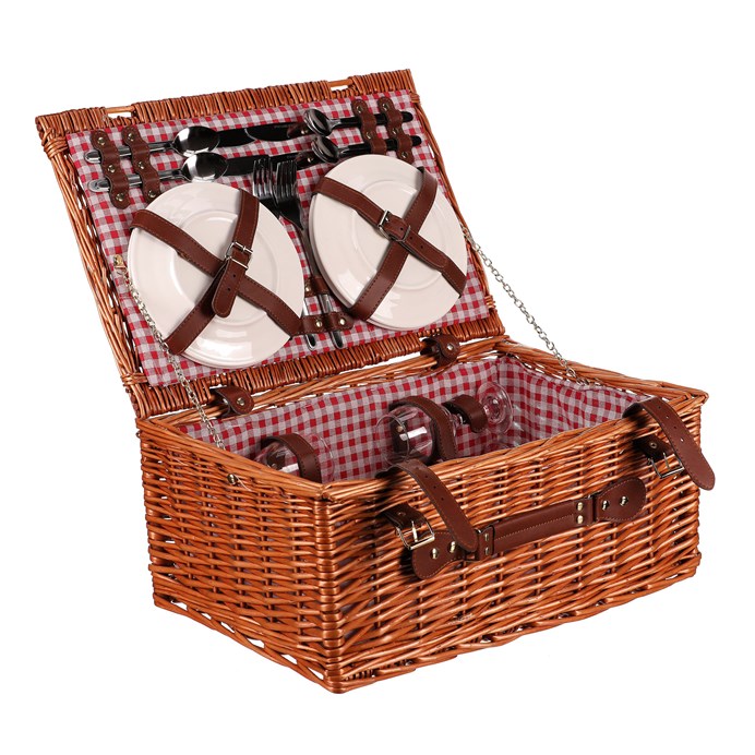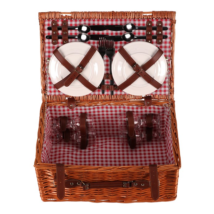 PRN2019 BR Kôš piknikový - s vybavením pre 4 osoby, prútený, farba hnedá