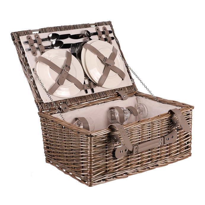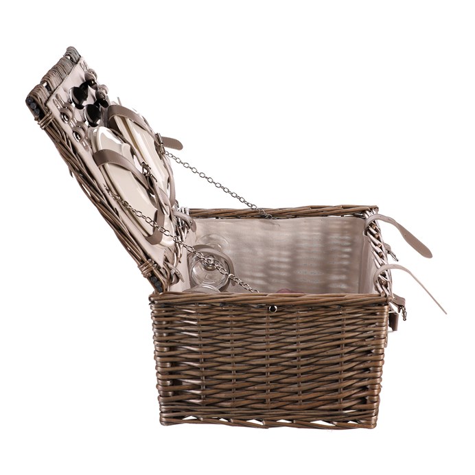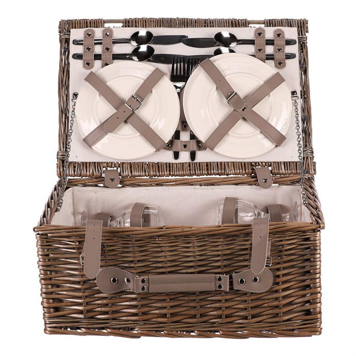 PRN2019 GREY Kôš piknikový - s vybavením pre 4 osoby, prútený, farba šedá
