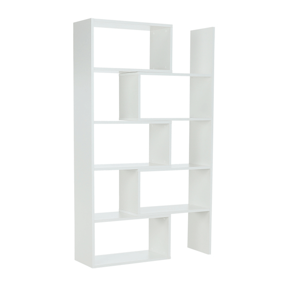 Moderný viacúčelový regál KLOE I Materiál: DTD laminovaná, Prevedenie: biela, Rozmery (ŠxHxV): 73-125x33x188 cm Dodávané v demonte.