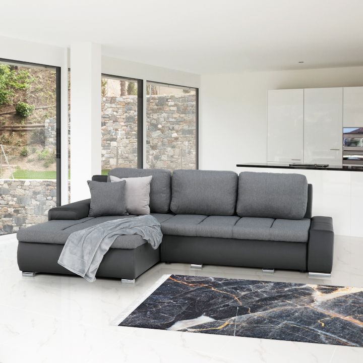 Univerzálna (Ľ/P) rohová rozkladacia sedacia súprava s úložným priestorom